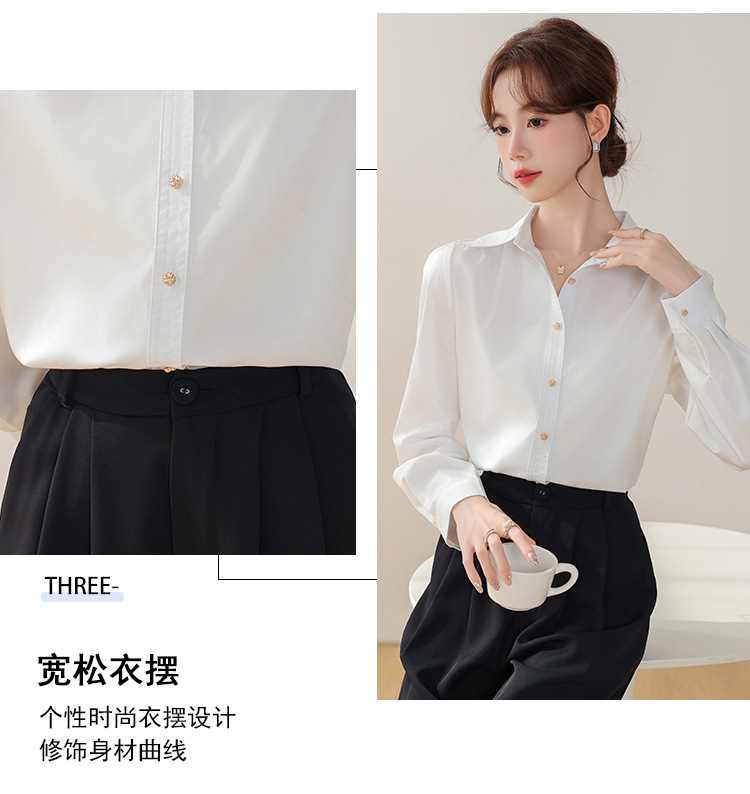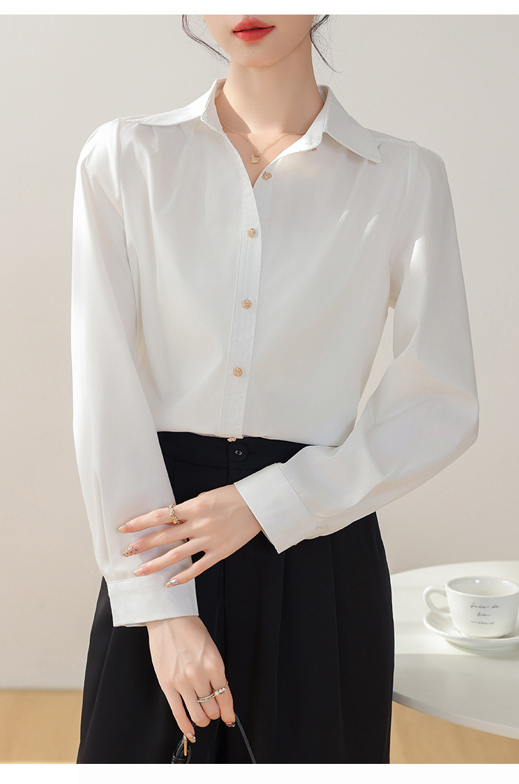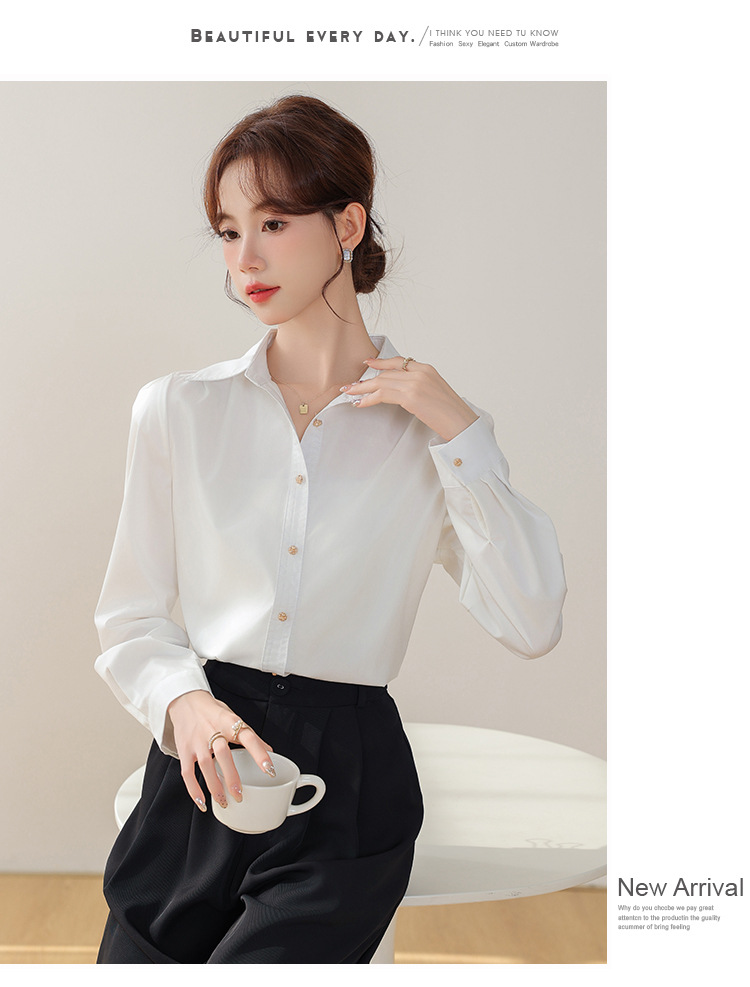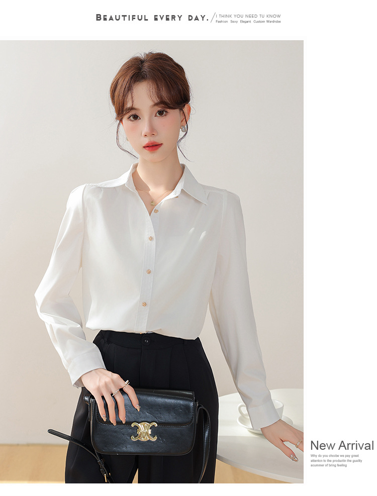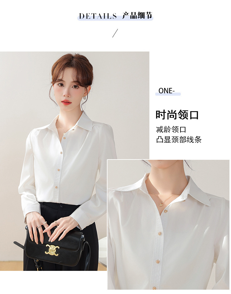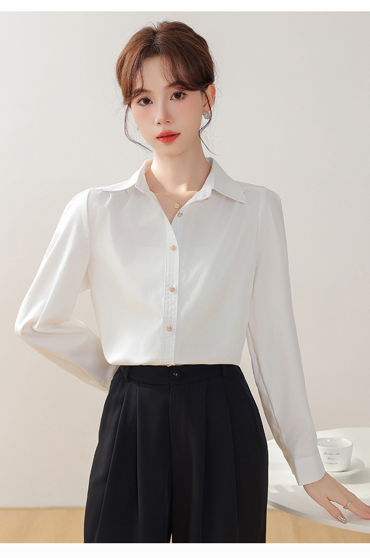 통근자 포수트 싱글 브레스트 긴팔 셔츠 여성의 2025 봄 새로운 간단한 단색 전문 셔츠 탑 크록