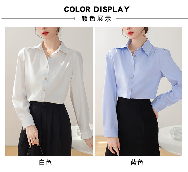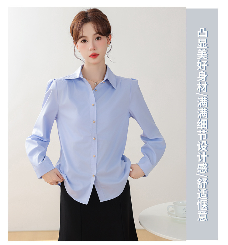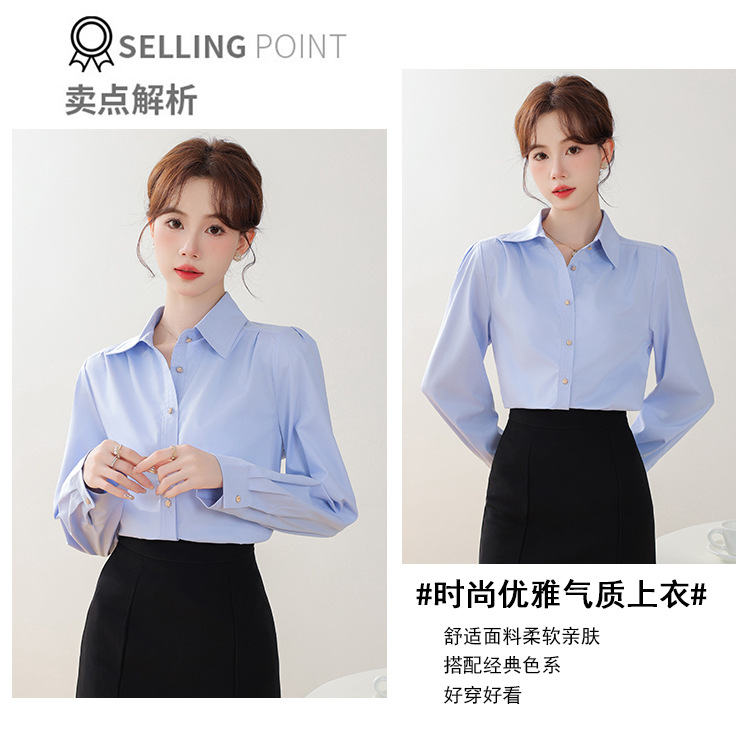 통근자 포수트 싱글 브레스트 긴팔 셔츠 여성의 2025 봄 새로운 간단한 단색 전문 셔츠 탑 크록스토어 가기