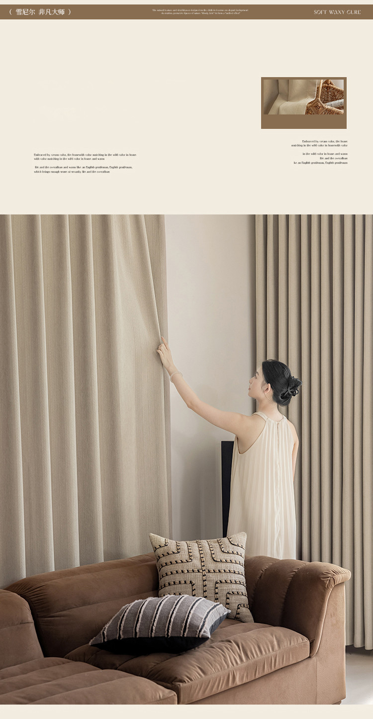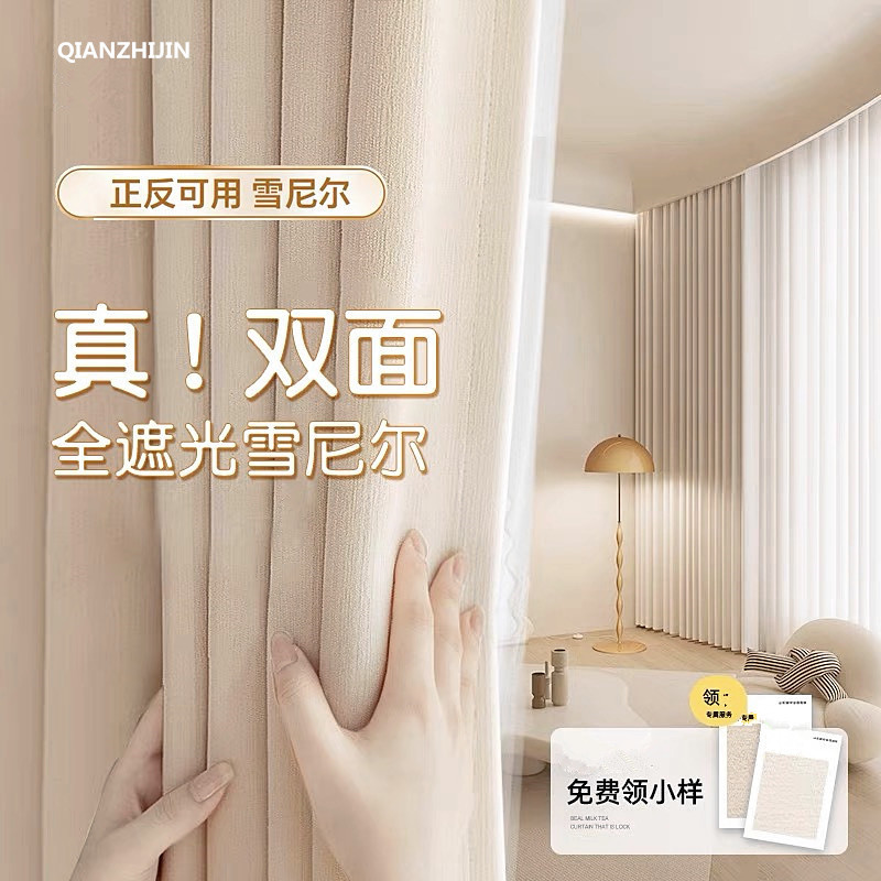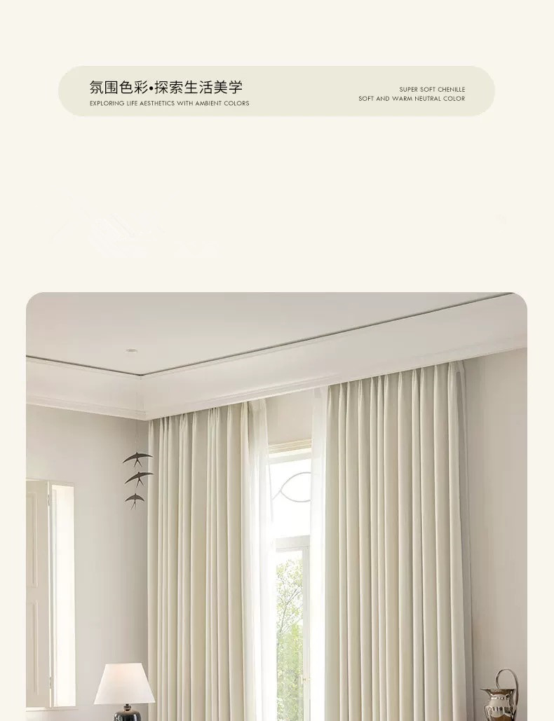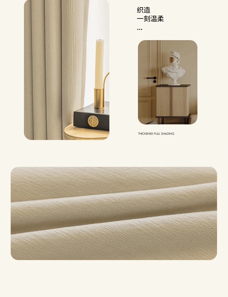 침실과 거실을위한 전체 음영 양면 Chenille 커튼 두꺼운 현대 간단한 프랑스 크림 스타일 고급 천 커튼