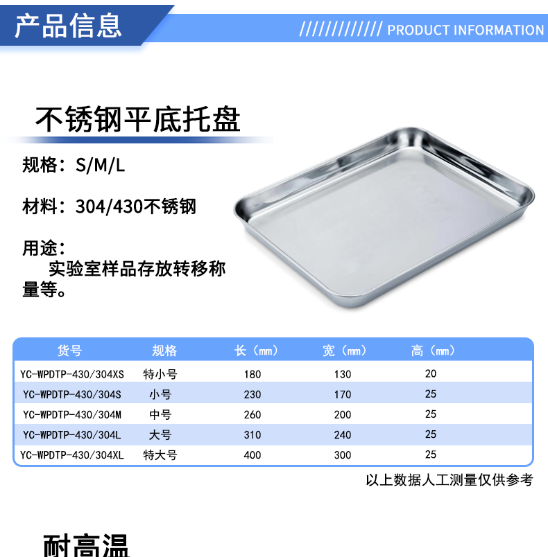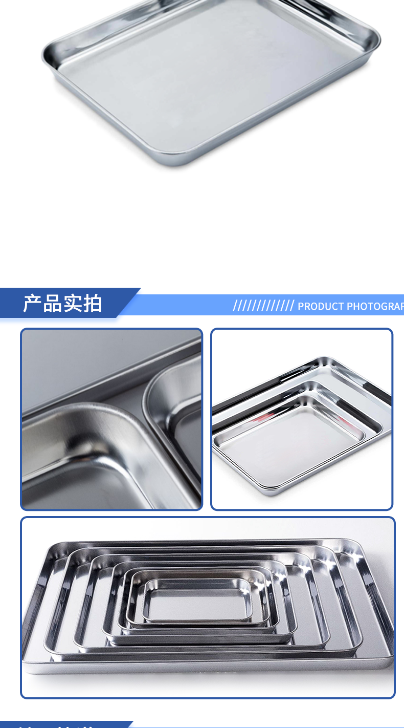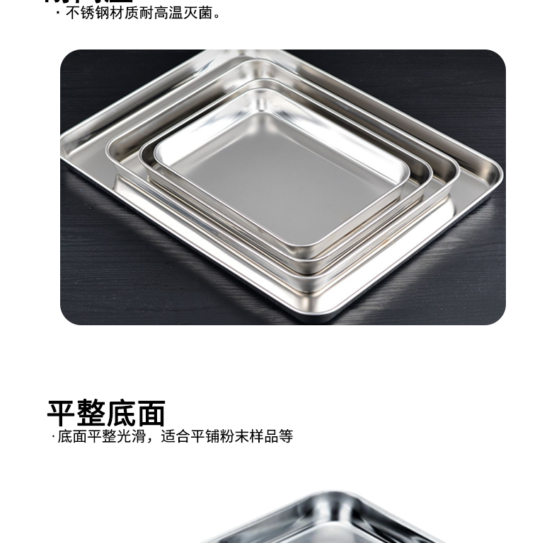 실험실 평면 바닥 스테인레스 스틸 트레이 304/430 소재 산 및 알칼리 저항하는 사각형 플레이트 스몰 사이즈 중간 대형 스테인레스 스틸스토어 가기