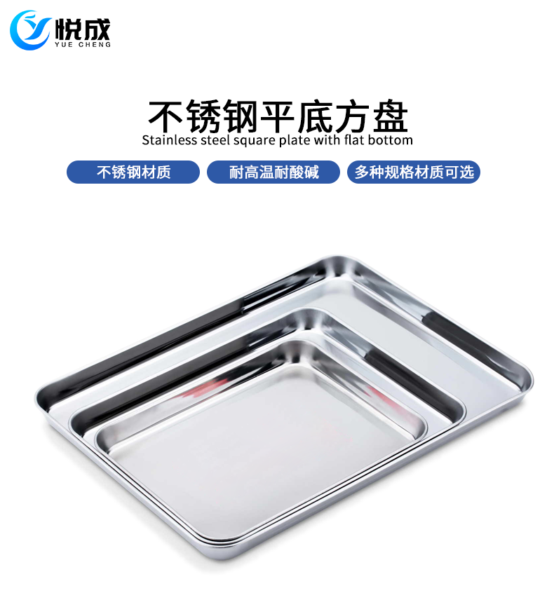 실험실 평면 바닥 스테인레스 스틸 트레이 304/430 소재 산 및 알칼리 저항하는 사각형 플레이트 스몰 사이즈 중간 대형 스테인레스 스틸