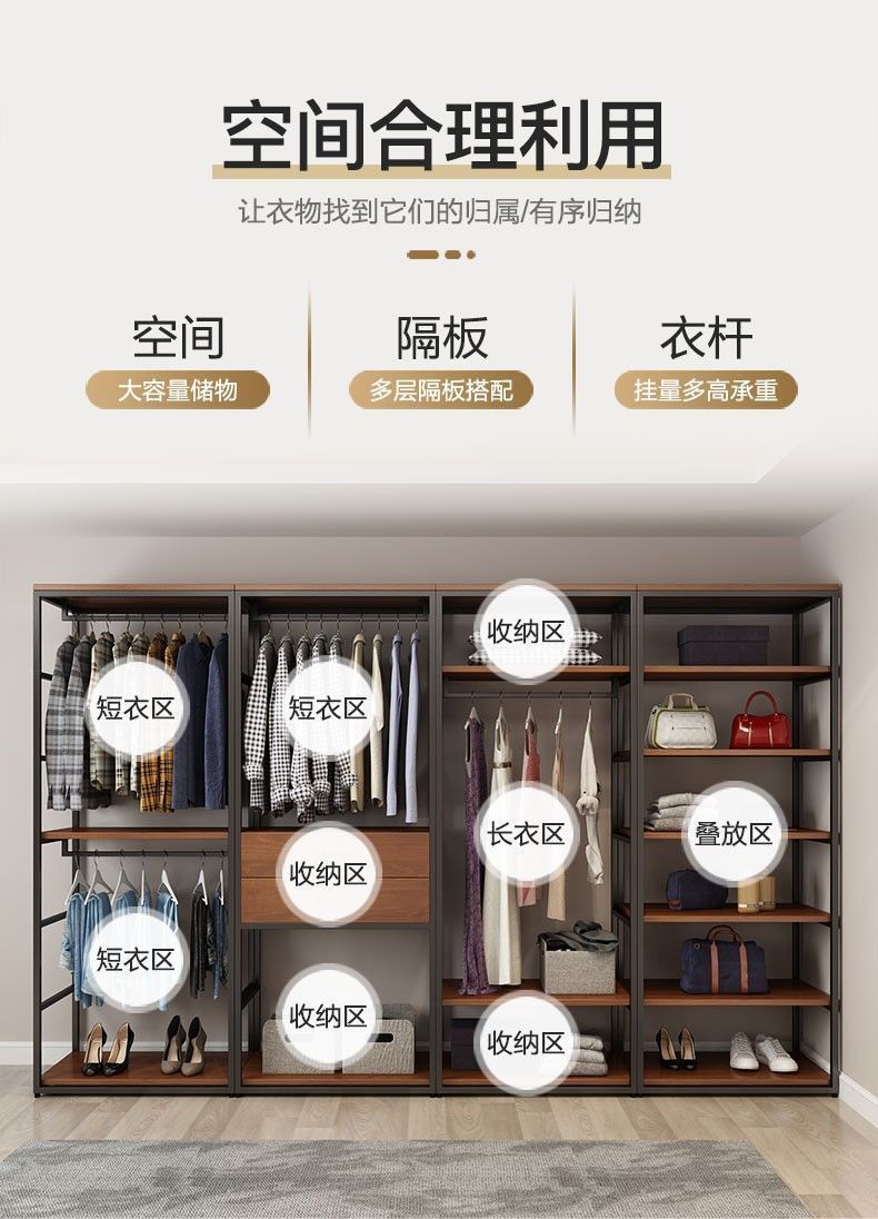워크 인 옷장 플로어 스탠딩 의류 옷걸이 가정용 간단한 보관 더블 레이어 조합 오픈 클로크룸 선반스토어 가기