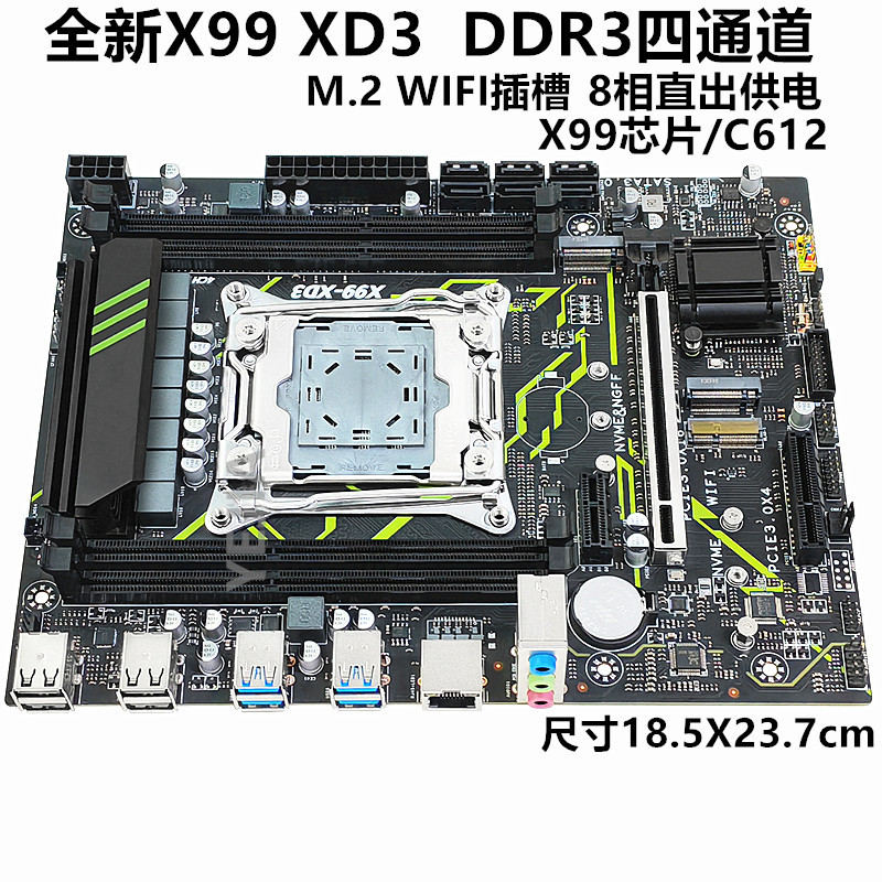 全新X99-XD3固态主板2011-3四通道DDR3豪华主板板,8相直出全固态CPU供电稳定强悍,带USB3.0,SATA3.0,双M2接口,M2 WiFi接口。支持DDR3服务器ECC,REG内存和普通内存,不可混插!支持以下CPU:E5-2629 E5-2649 E5-2669 E5-2673 E5-2676 E5-2678 E5-2696 2686 2666V3V4CPU不是以上CPU需更换X99DDR4内存才可以支持undefined