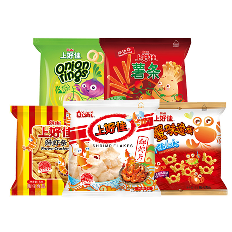 Shanghaojia 신선한 새우 칩 새우 양파 반지 감자 칩 작은 패키지 선물 가방 어린이 레저 간식 프랑스 튀김 간식