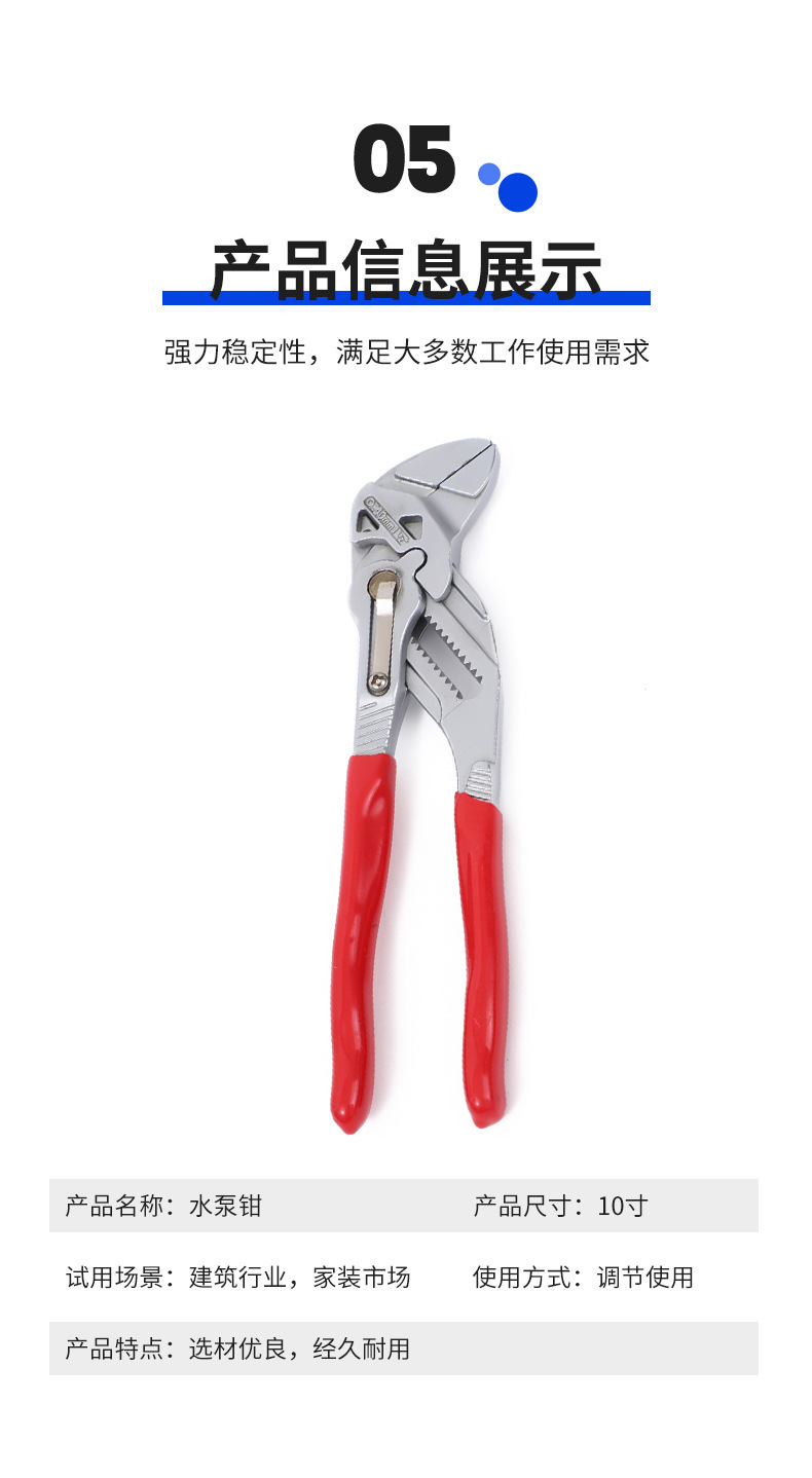 새로운 유형의 퀵 워터 펌프 펜치 병아리 입 워터 파이프 펜치 대형 오프닝 가정용 공구 펜치를 클램핑 다기능 배관