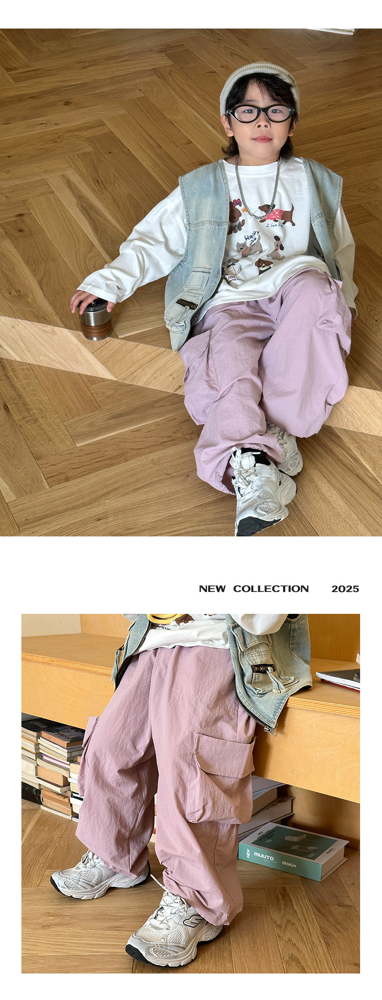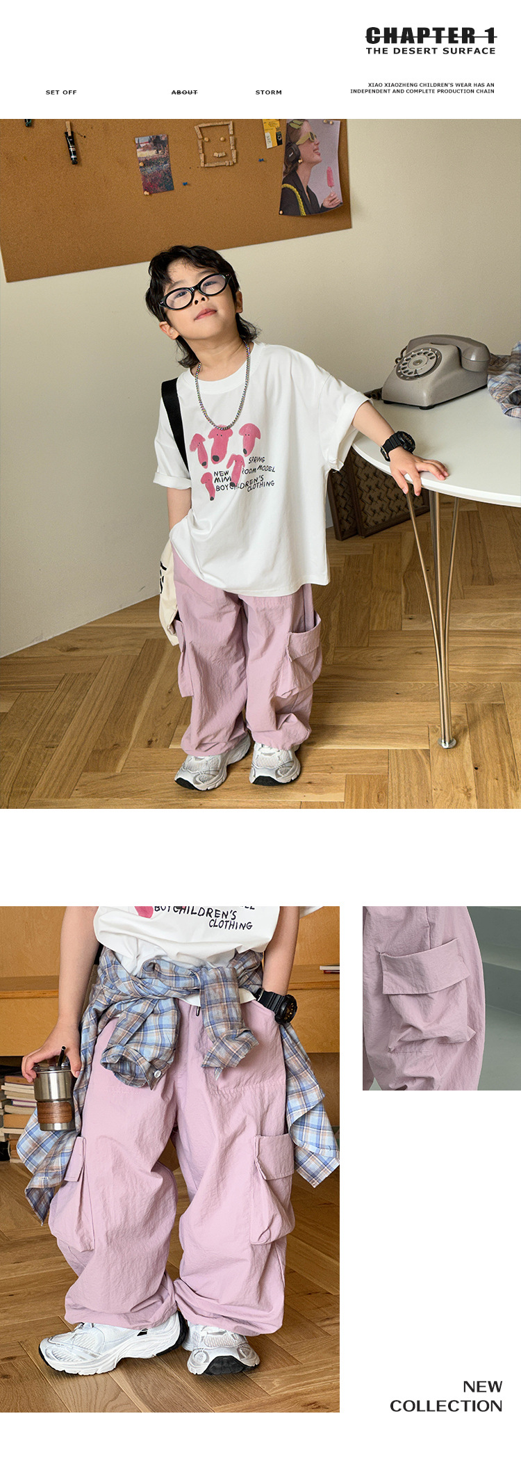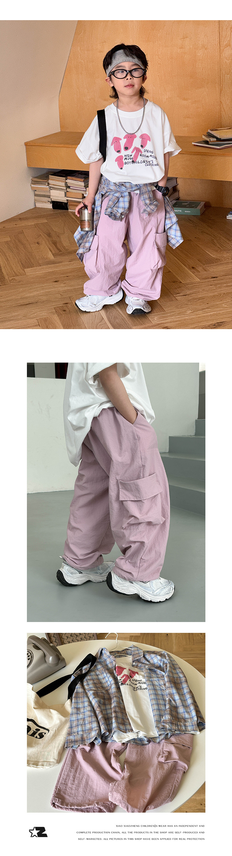 어린이 한국식 캐주얼 바지 2025 봄 새 소년 서양식 핑크 어린이의 느슨한 봄 패션스토어 가기