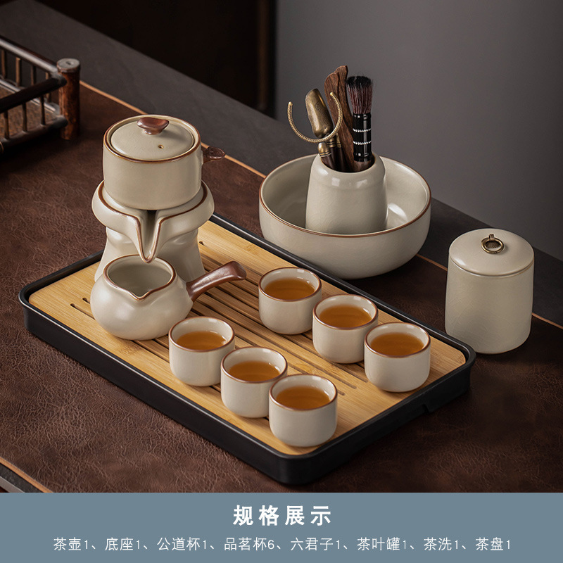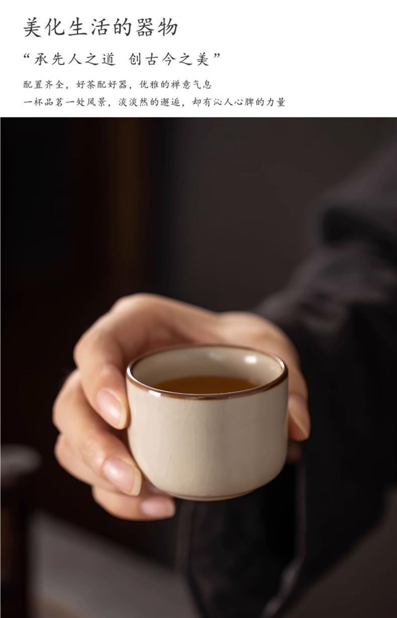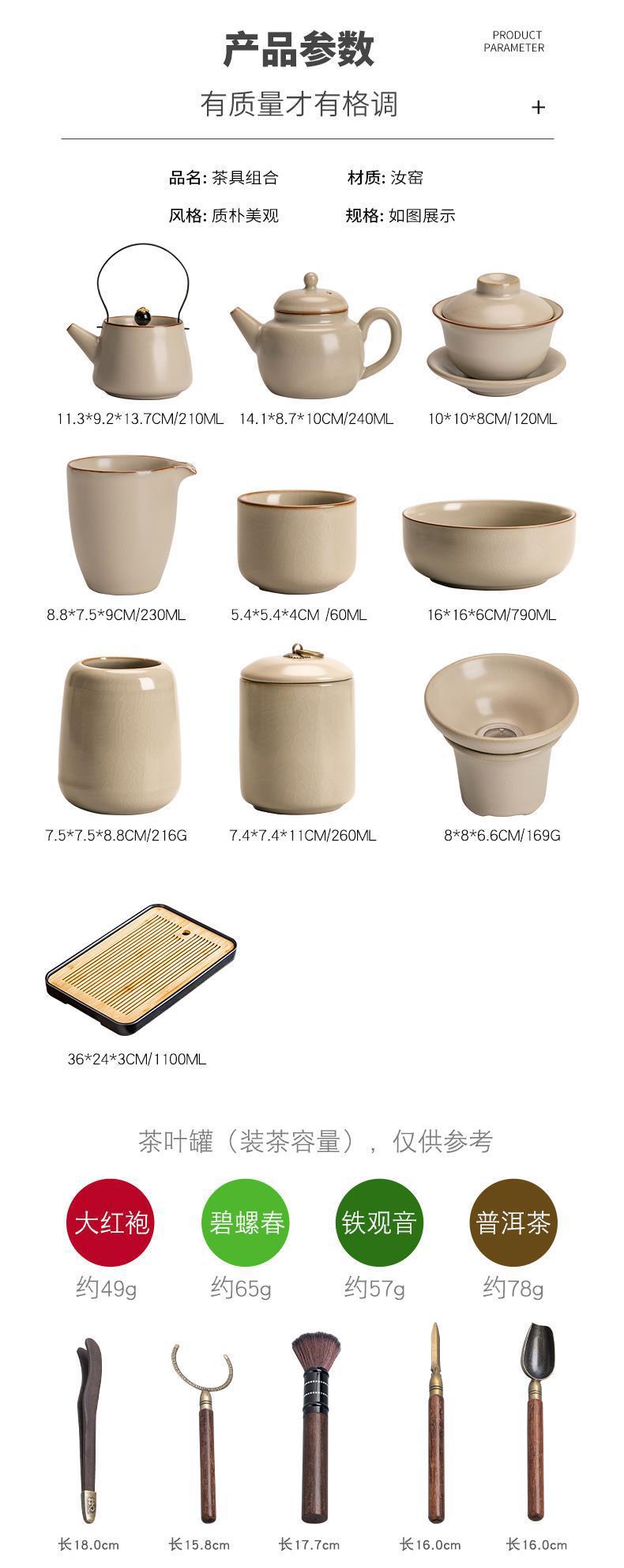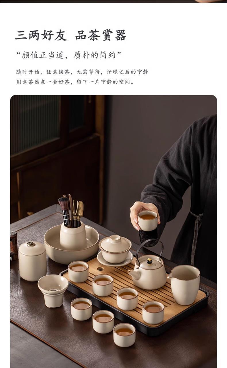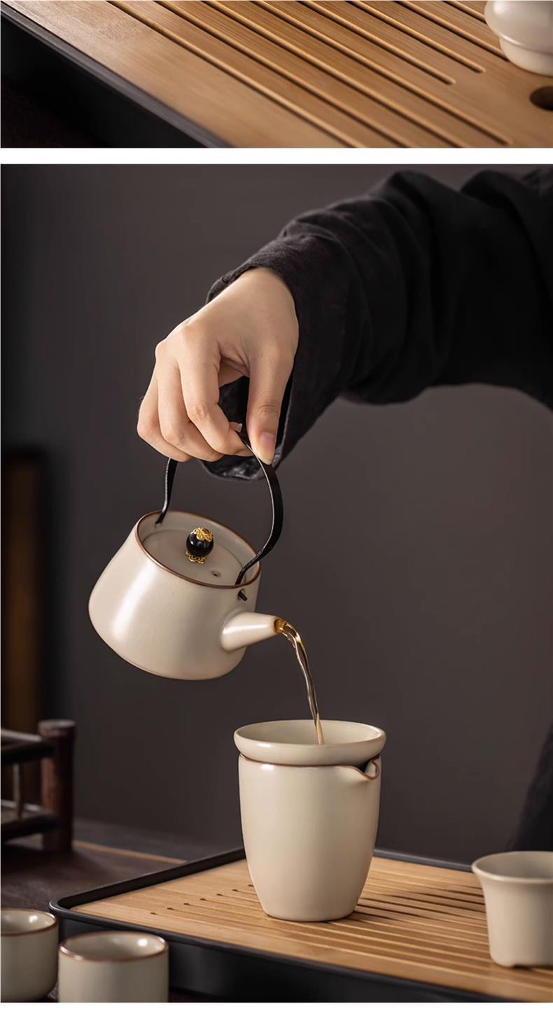 가벼운 고급 고급 차 마시는 중국 스타일 베이지 색 Ruyao 쿵푸 차 세트 세트 가정용 세라믹 주전자 커버 그릇 티 컵 티 트레이스토어 가기