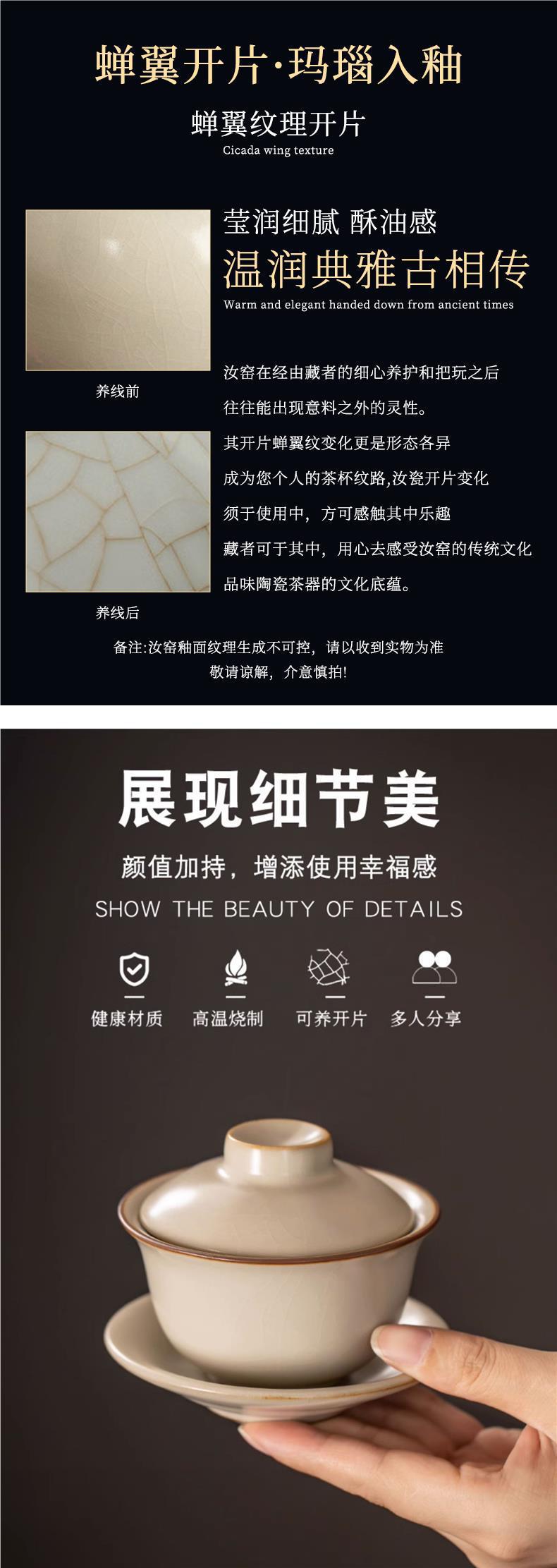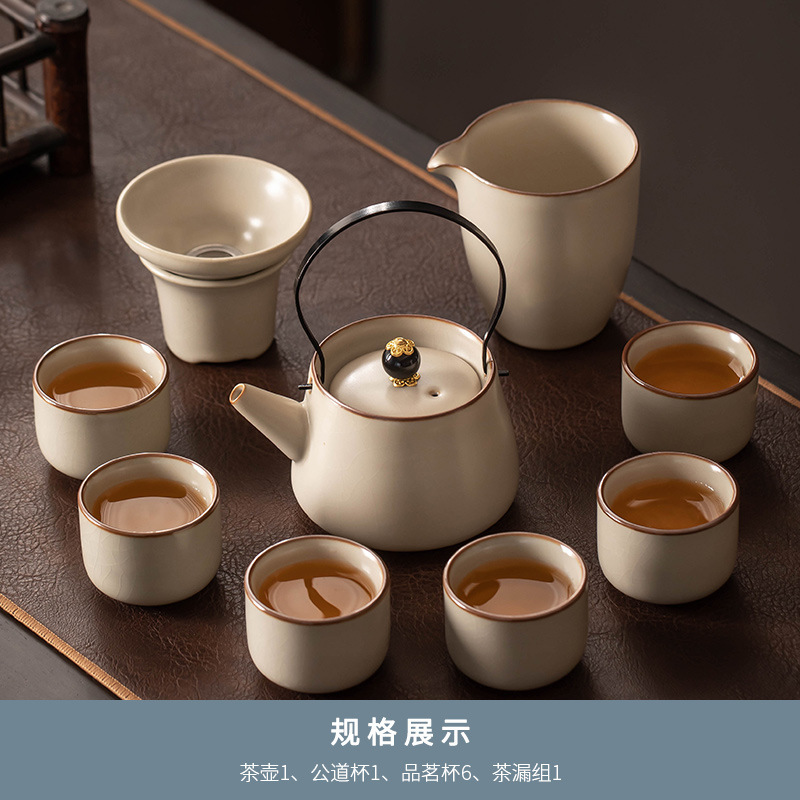 • "베이지색 여요 ""위황 찻주전자 덮은 그릇"" 8컵 전체 세트"
