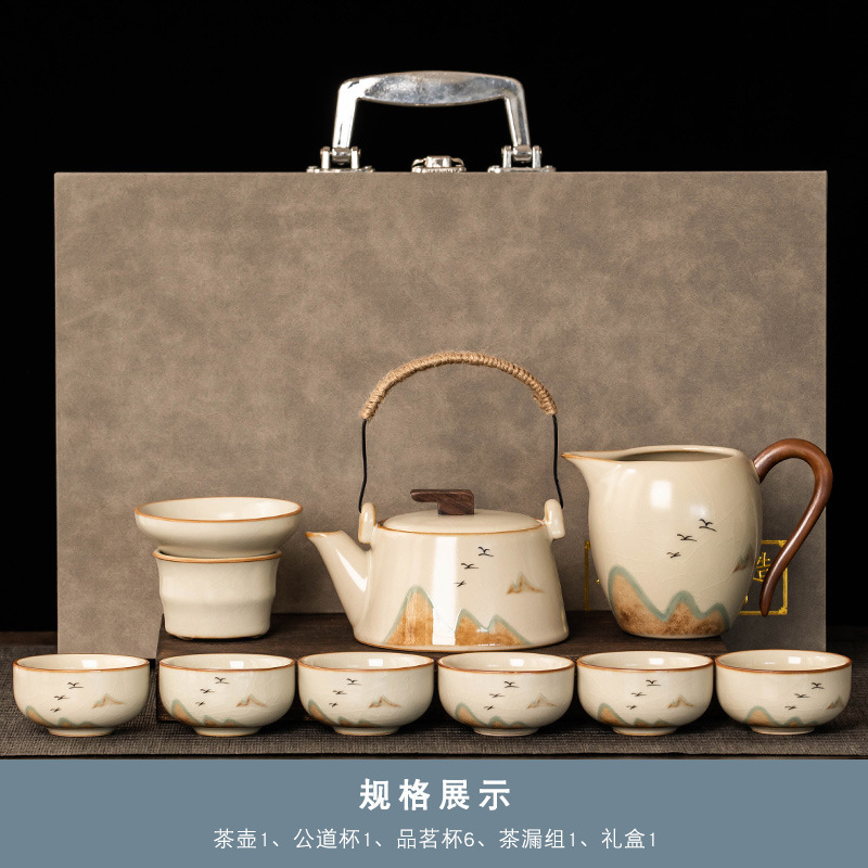 • "베이지 여요 ""먼 산"" 서시 찻주전자 6컵 10종 세트 + 선물 상자"