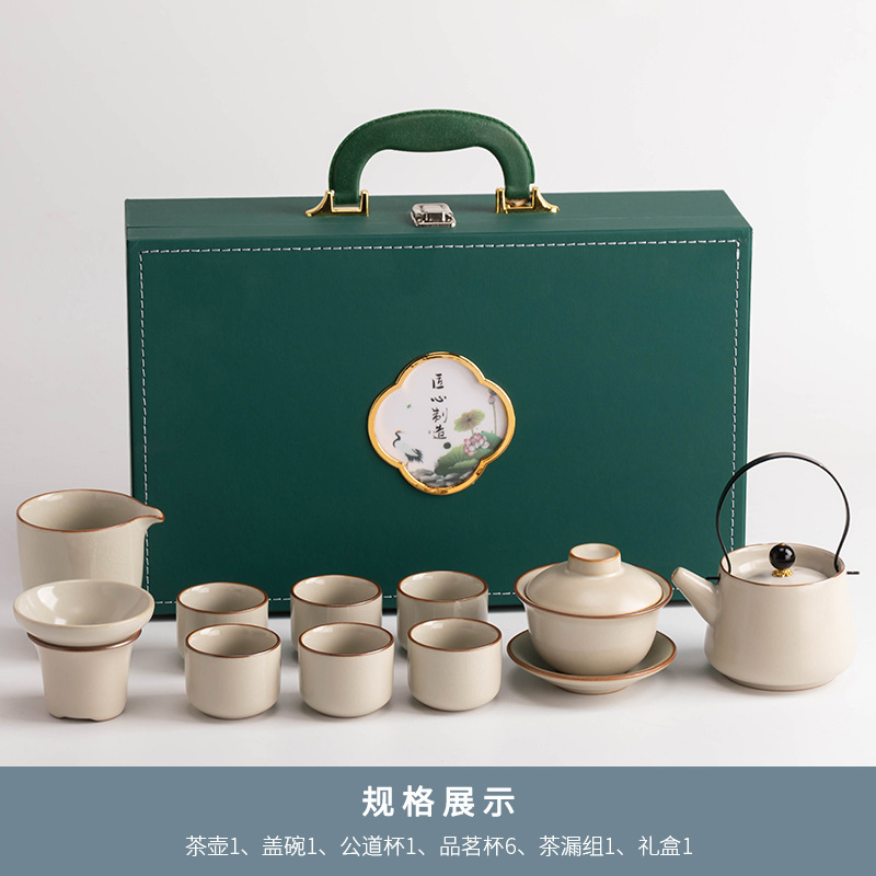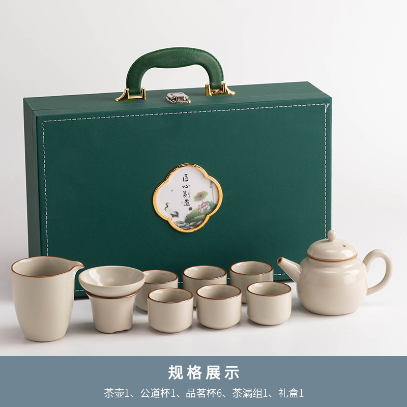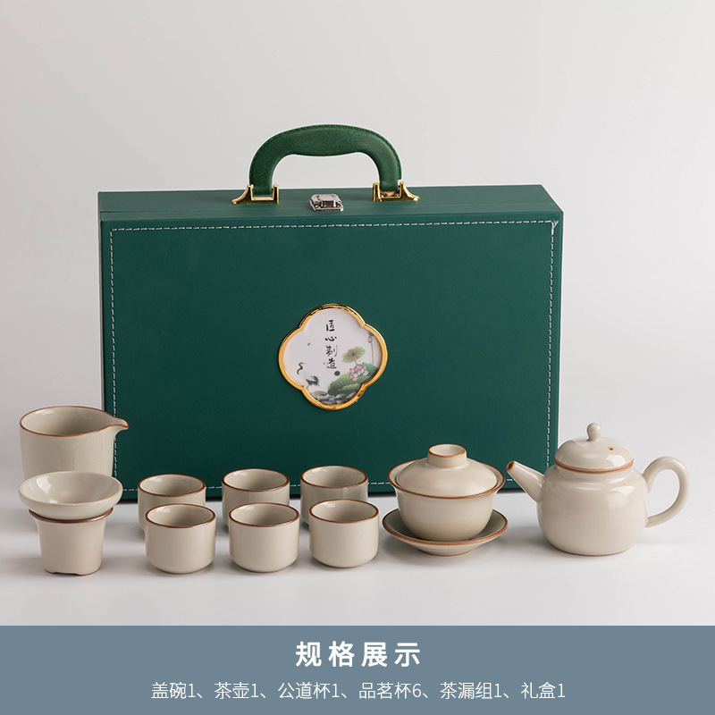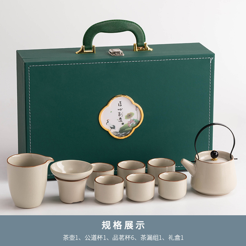 • "베이지 여요 ""위황 찻주전자 덮은 그릇"" 6컵 11개 세트 + 선물 상자"