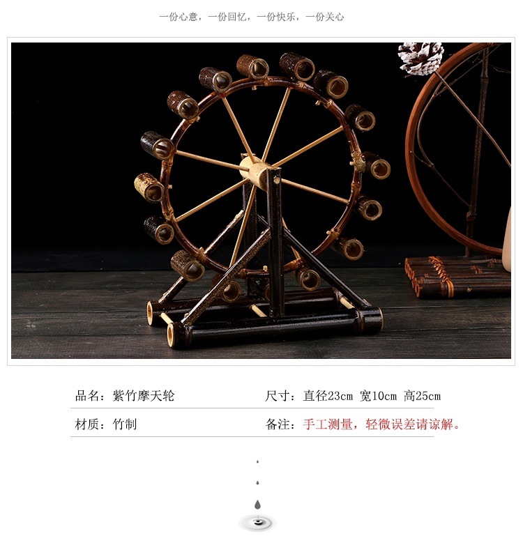 대나무 관람차 대나무 바람 차 물 자동차 모델 홈 가구 장식 보라색 대나무 공예 장식품 선물