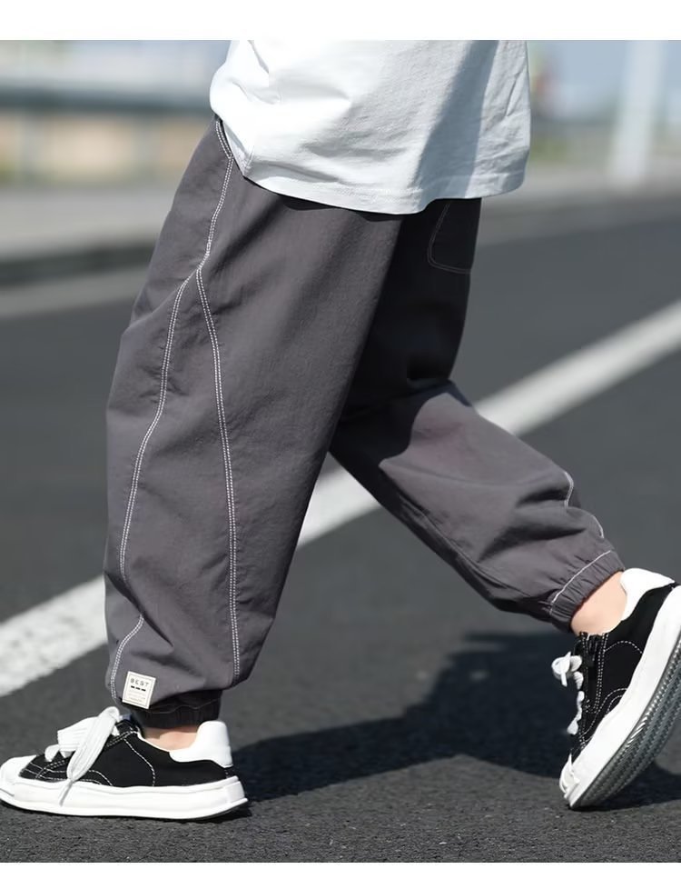 남학생 바지 여름 캐주얼 한국 스타일 바지 어린이 아이스 실크 안티 모기 바지 느슨한 얇은 소년 핸섬 스포츠 바지
