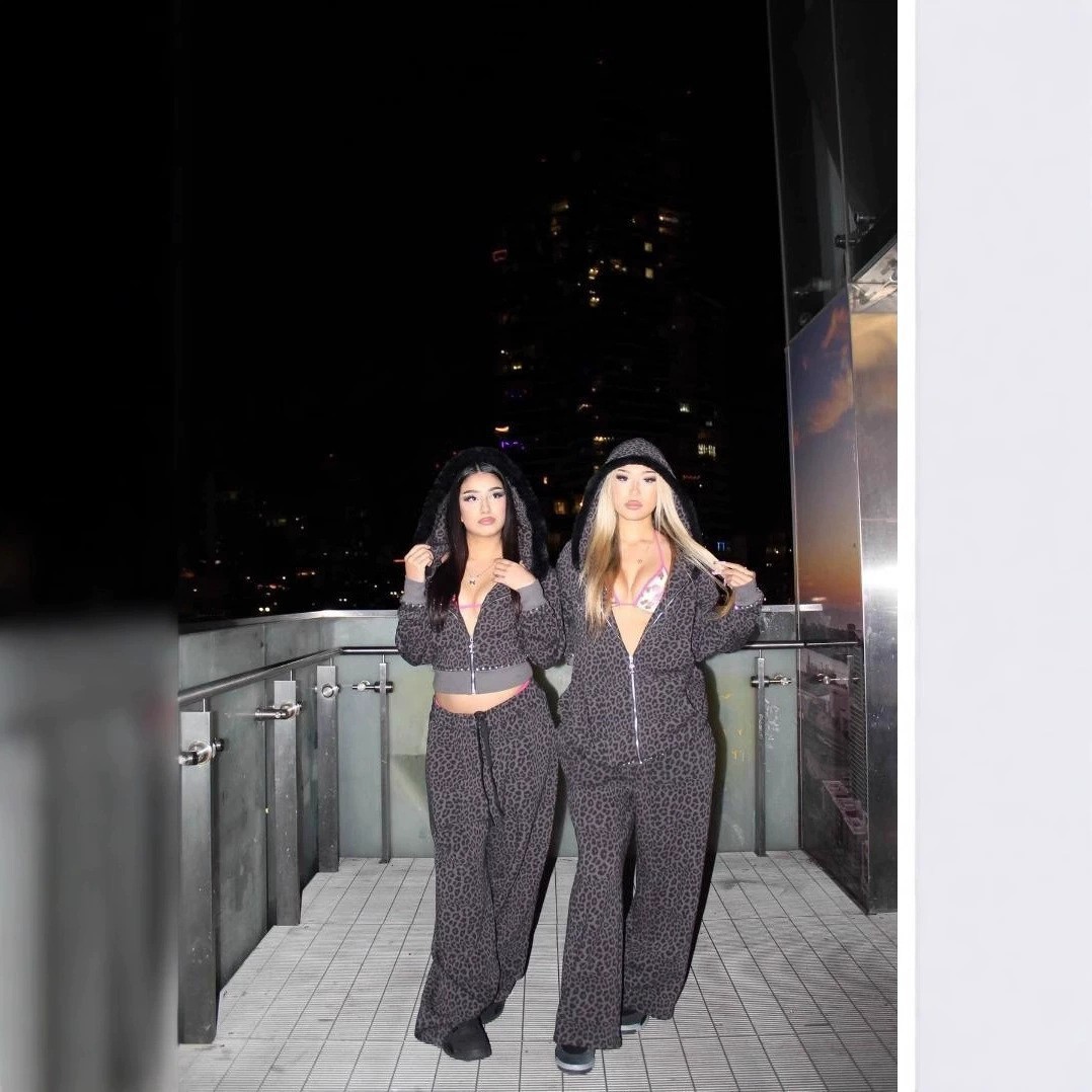 2024 가을과 겨울 새로운 아메리칸 스타일 레트로 레오파드 무늬 느슨한 얇은 벨벳 높은 허리 넓은 다리 캐주얼 바지 여성용 슬림 바지스토어 가기
