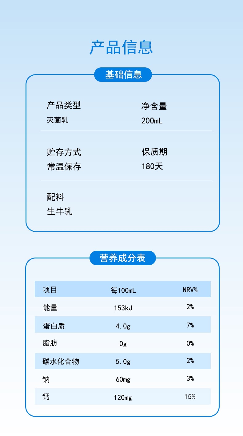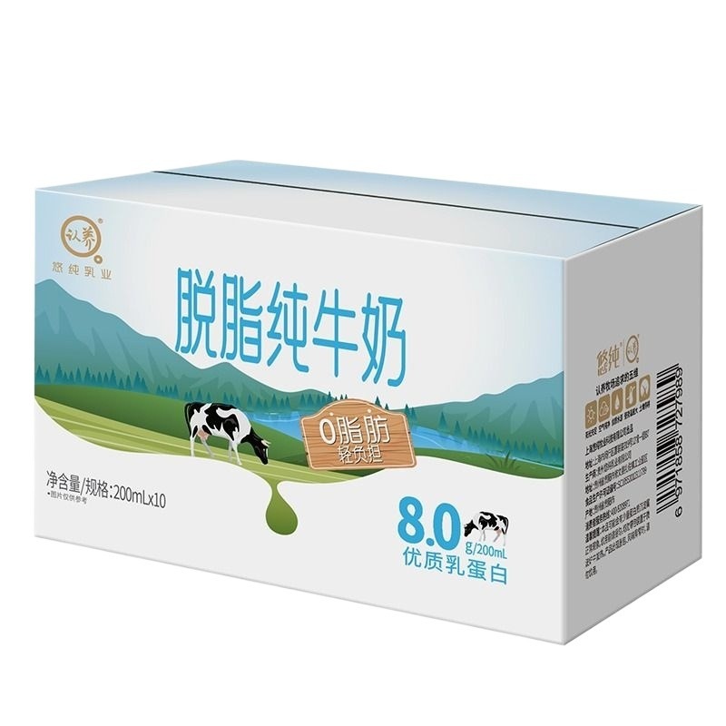 탈지 순수 우유 4.0g 단백질 200ml * 10 상자 가벼운 부담 건강한 아침 우유 채택