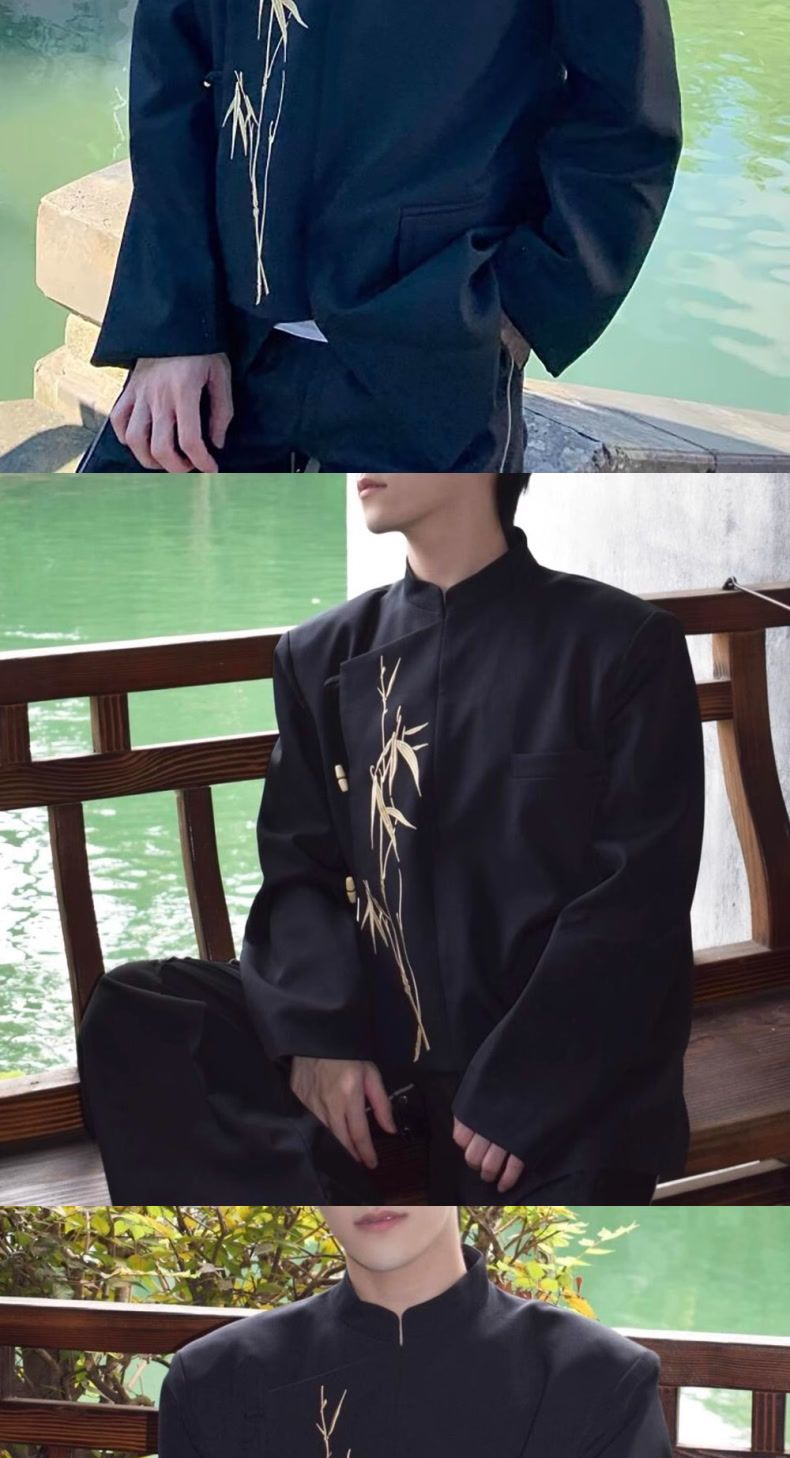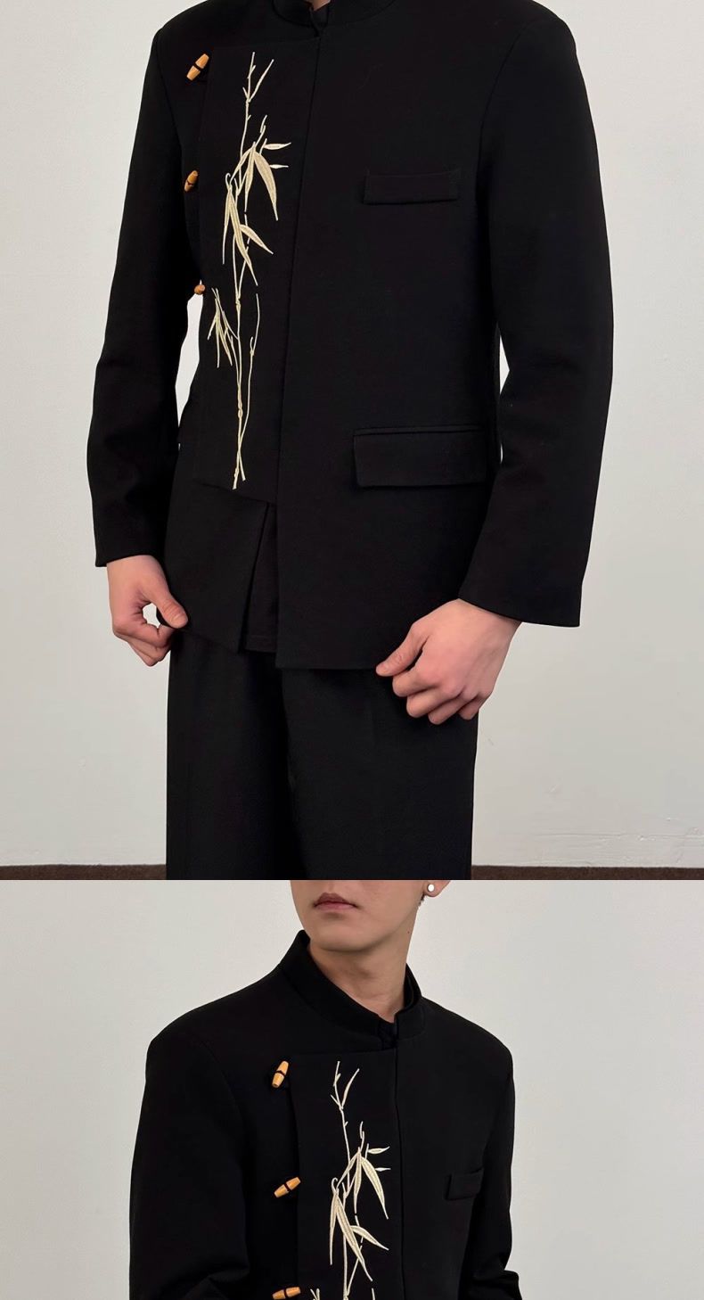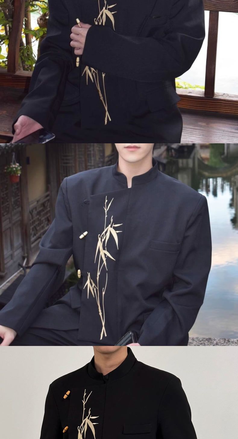 새로운 중국 스타일 국가 스타일 중국 튜닉 세트 남성 하이 엔드 웨딩 세트 재킷 봄과 가을 약혼 행사 세트 세트스토어 가기