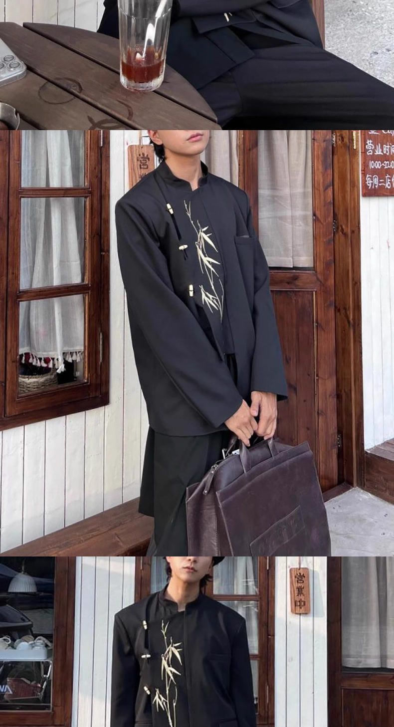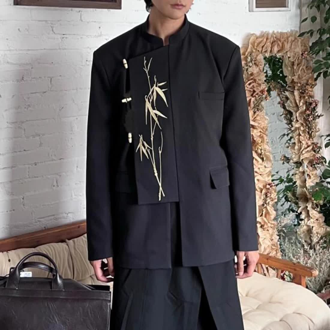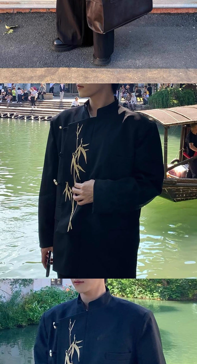 새로운 중국 스타일 국가 스타일 중국 튜닉 세트 남성 하이 엔드 웨딩 세트 재킷 봄과 가을 약혼 행사 세트 세트스토어 가기