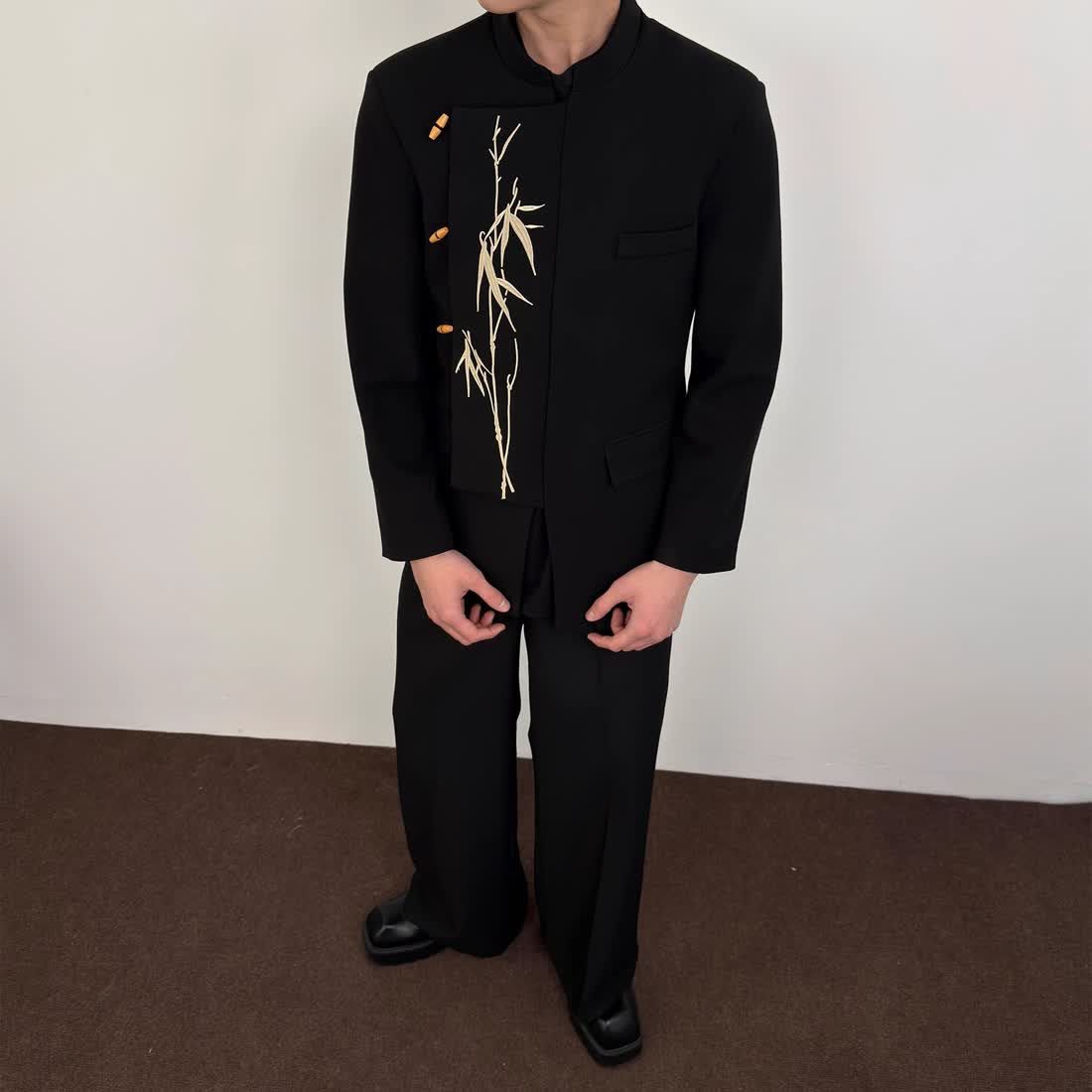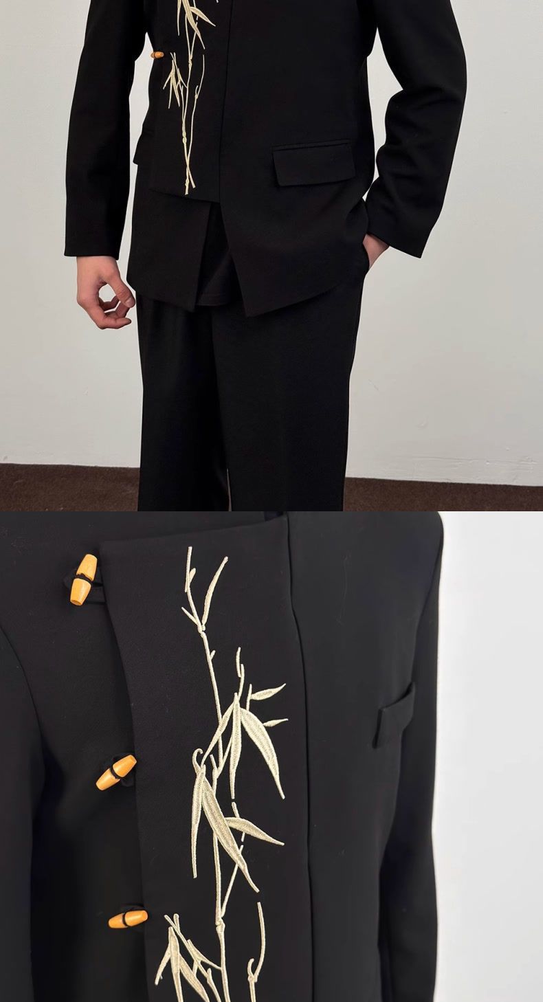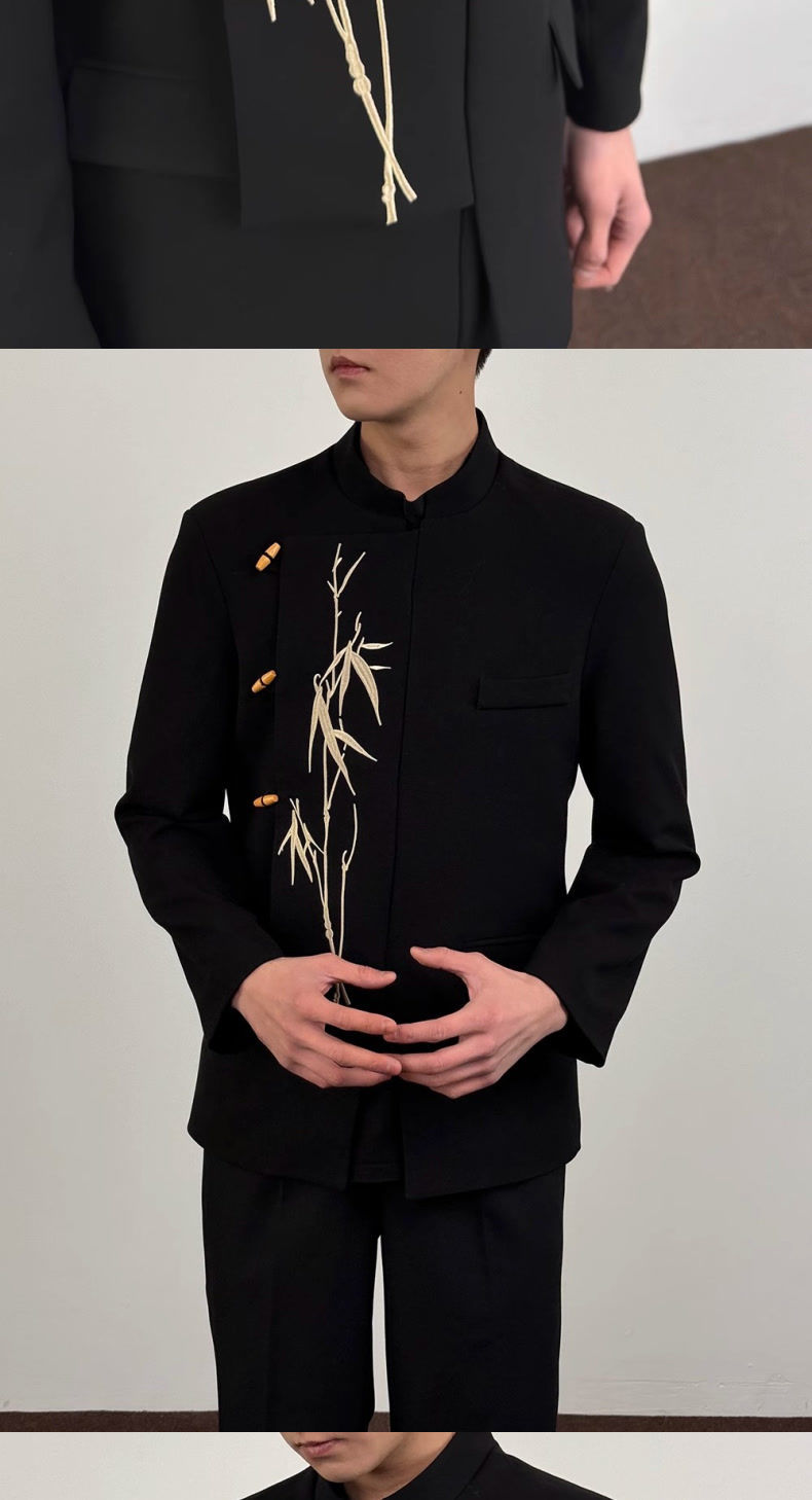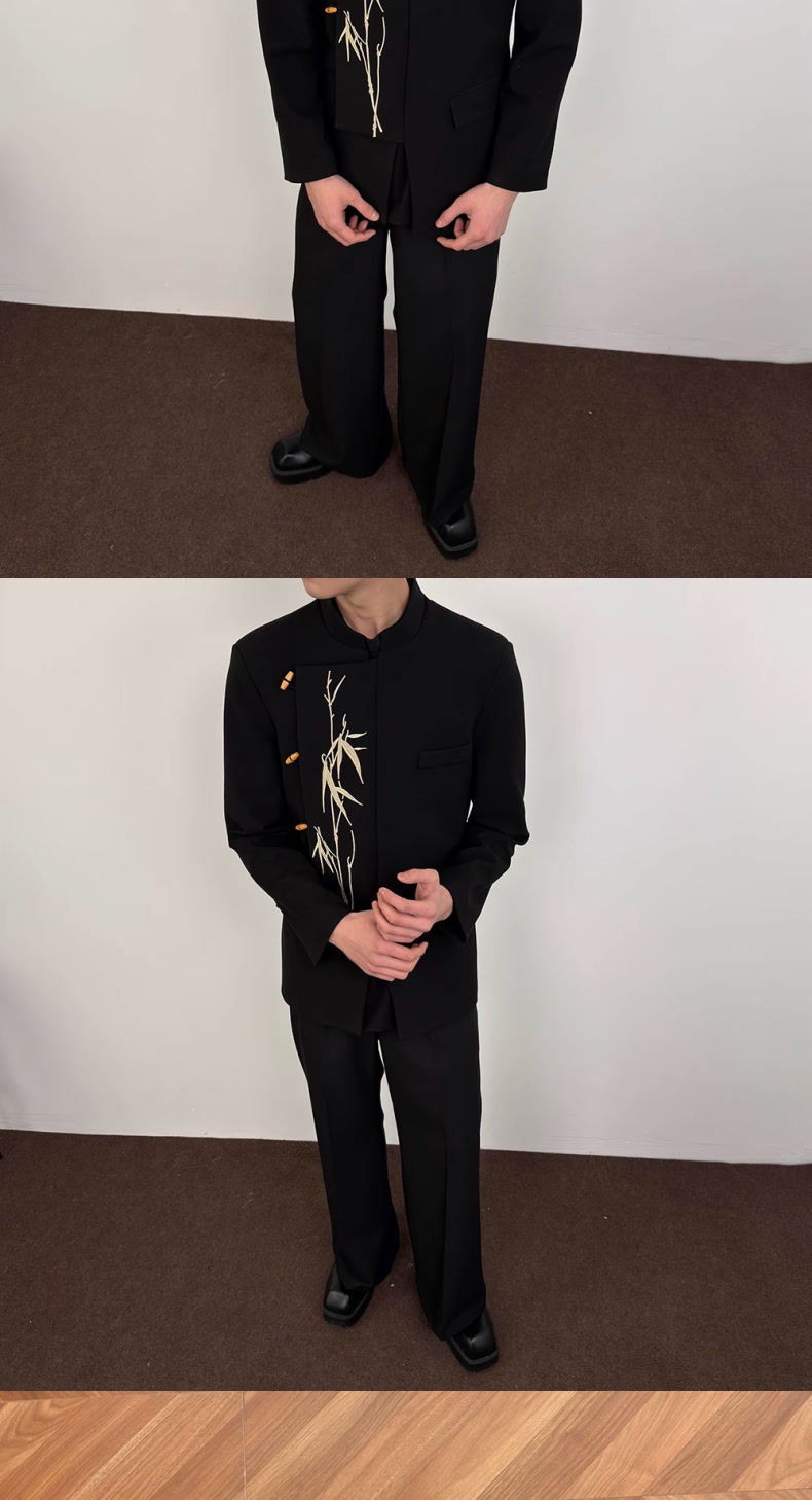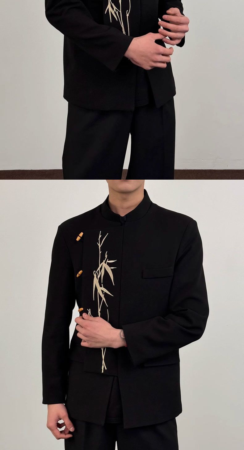 새로운 중국 스타일 국가 스타일 중국 튜닉 세트 남성 하이 엔드 웨딩 세트 재킷 봄과 가을 약혼 행사 세트 세트