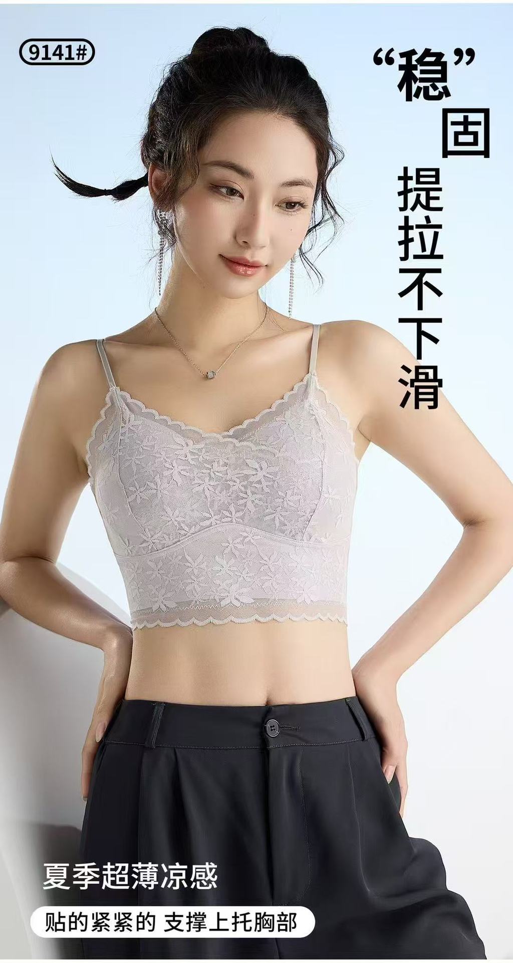 9141 레이스 슬링 아이스 실크 섹시 올 매치 고정 컵 어퍼 얇은 두꺼운 쿨 아름다운 백 여성베이스 조끼스토어 가기
