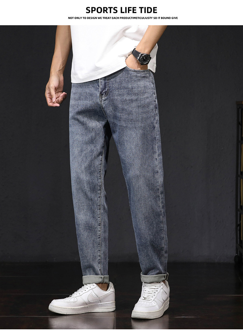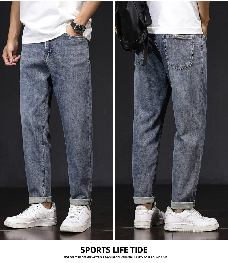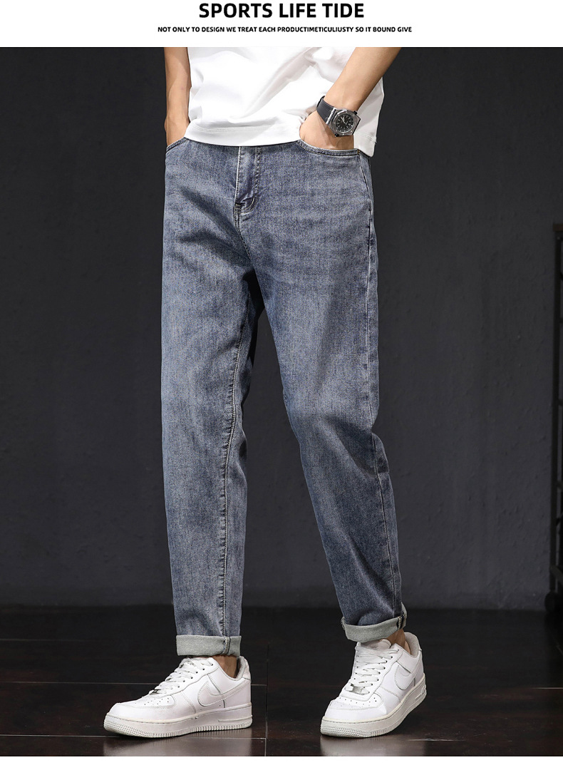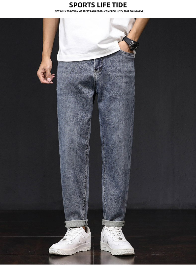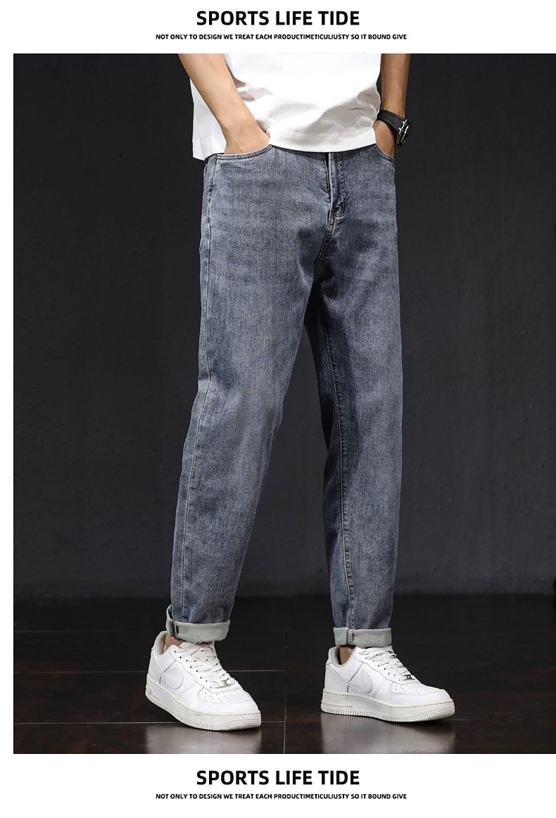 8207 | 플러스 사이즈 남자 여름 새로운 레트로 청바지 남자 느슨한 플러스 사이즈 할란 스트레치 다리 바지