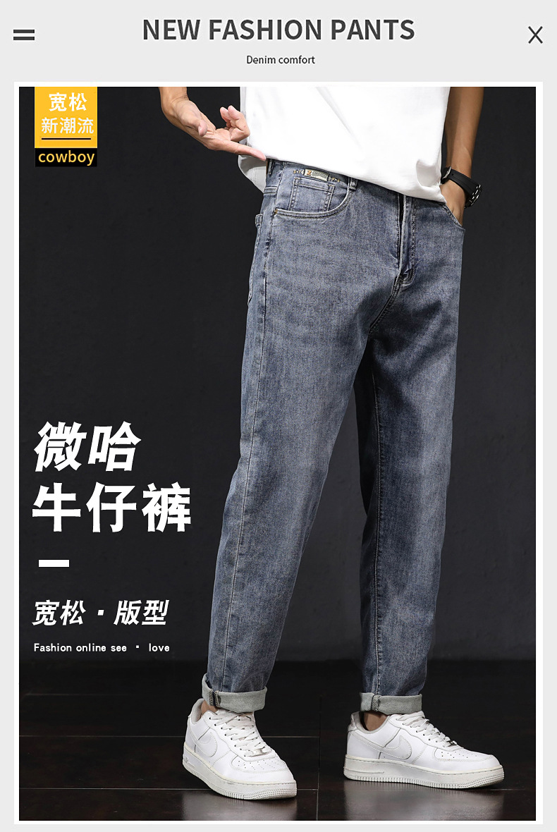 8207 | 플러스 사이즈 남자 여름 새로운 레트로 청바지 남자 느슨한 플러스 사이즈 할란 스트레치 다리 바지스토어 가기