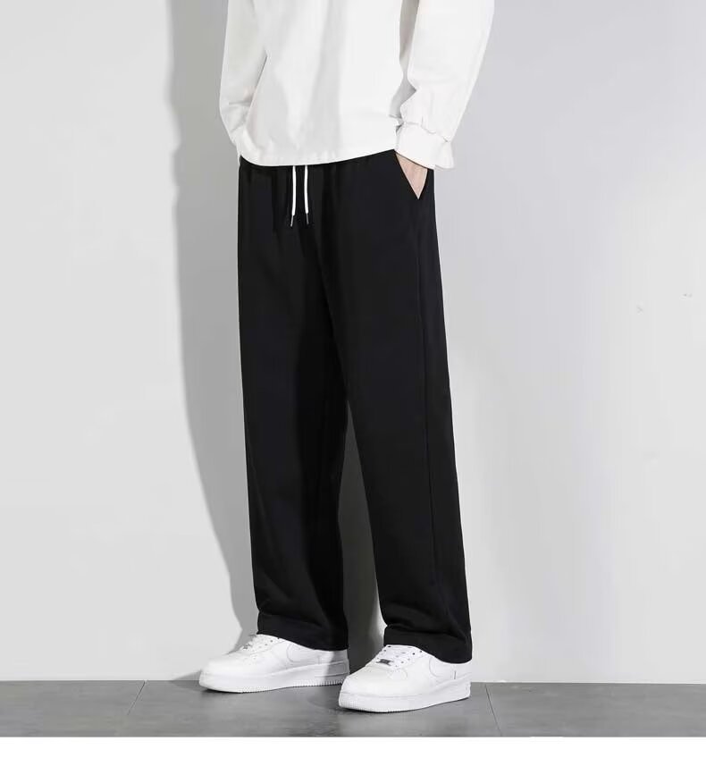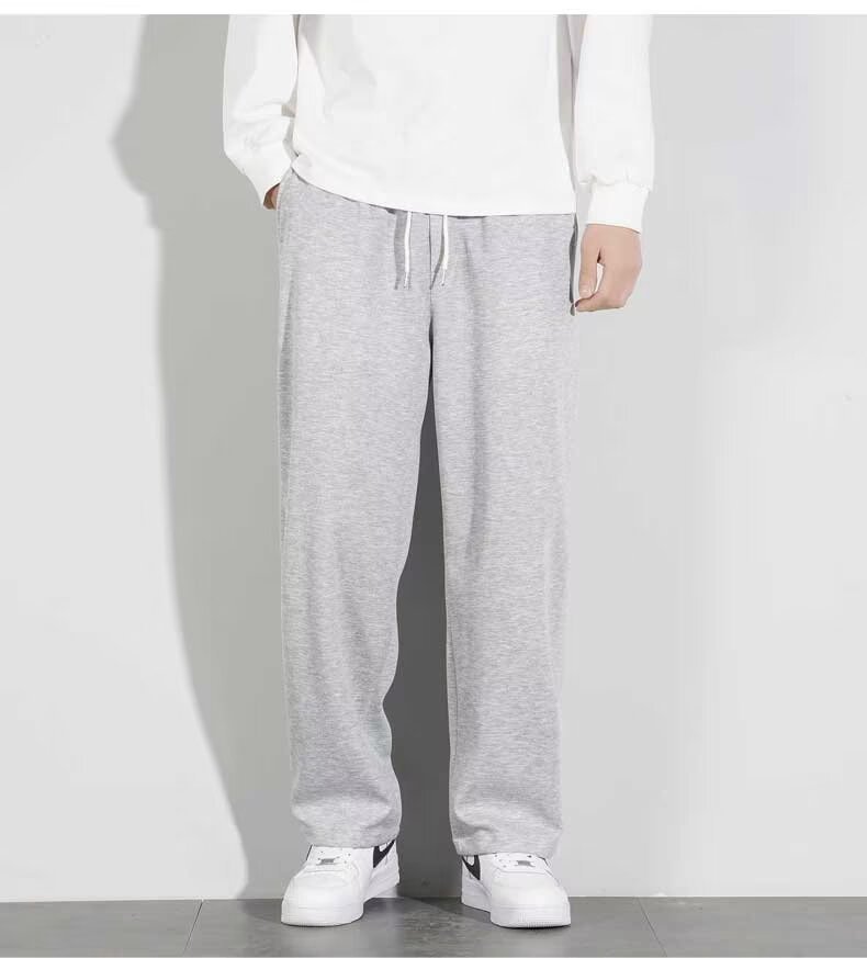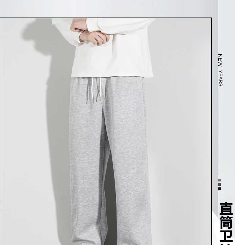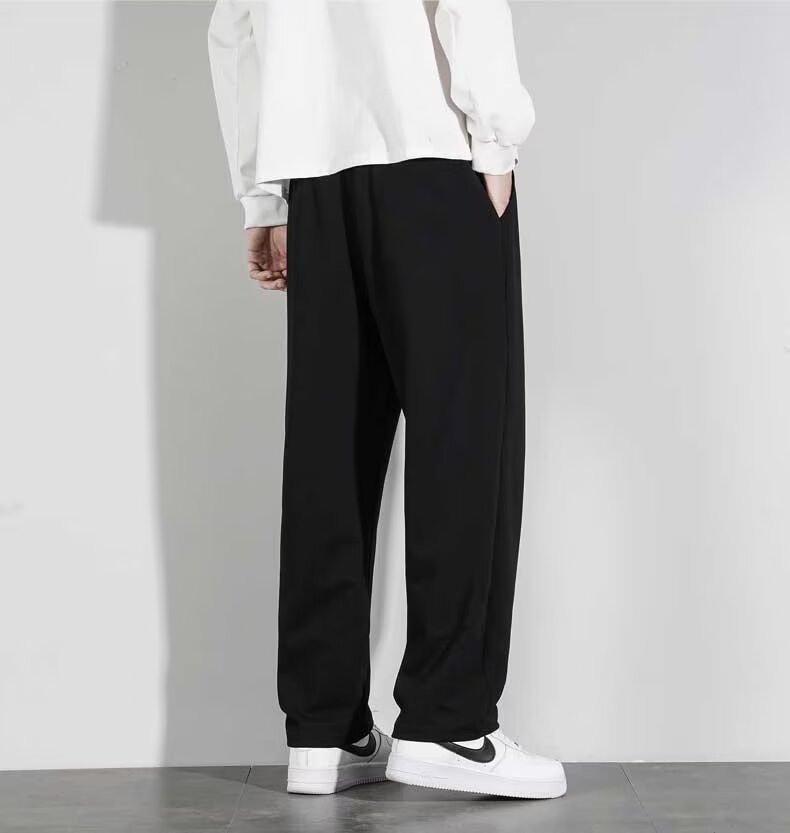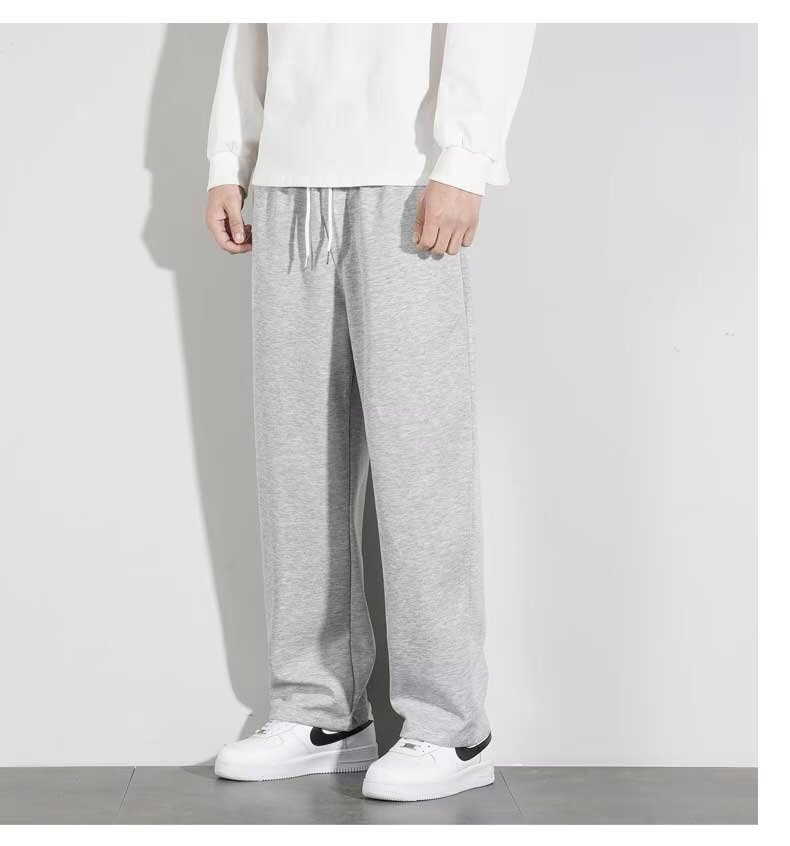 땀 바지 남자 봄과 가을 스트레이트 느슨한 플러스 사이즈 단색 바지 한국 스타일 간단한 캐주얼 스포츠 자른 바지