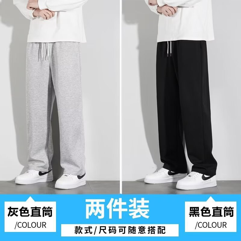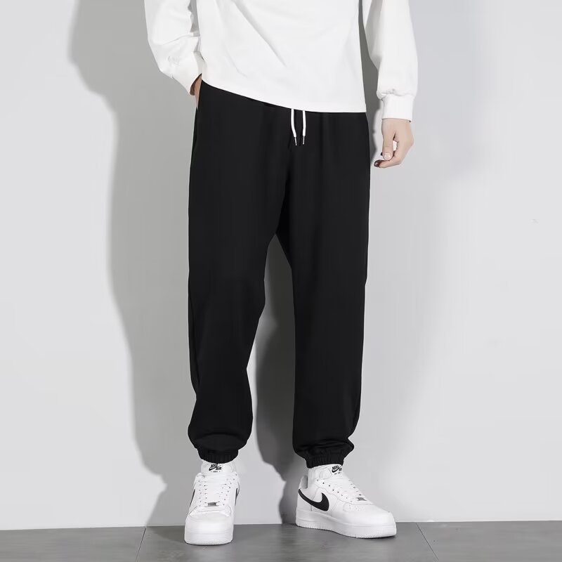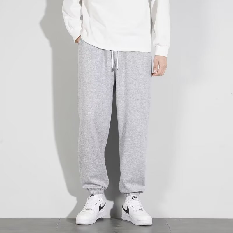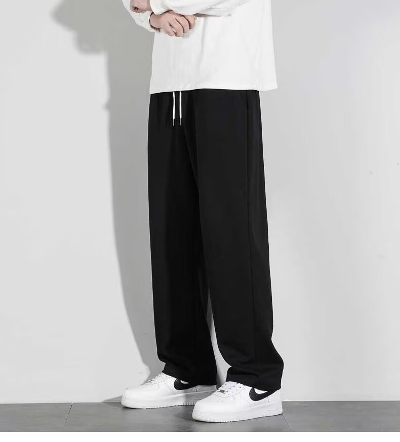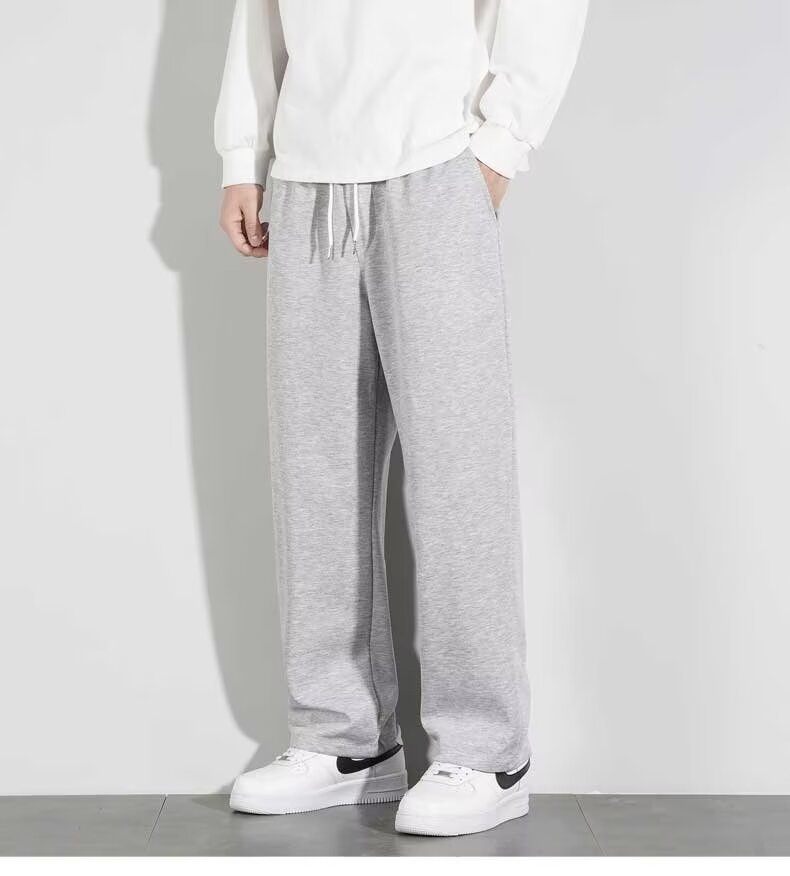 땀 바지 남자 봄과 가을 스트레이트 느슨한 플러스 사이즈 단색 바지 한국 스타일 간단한 캐주얼 스포츠 자른 바지