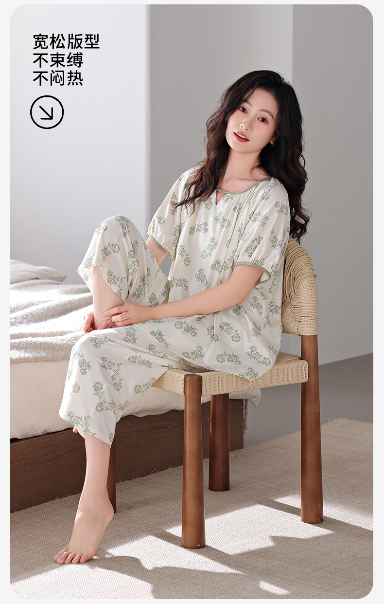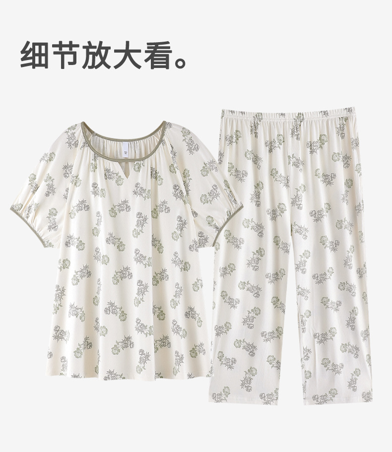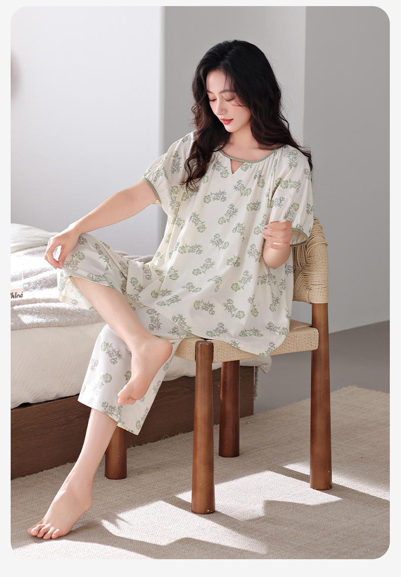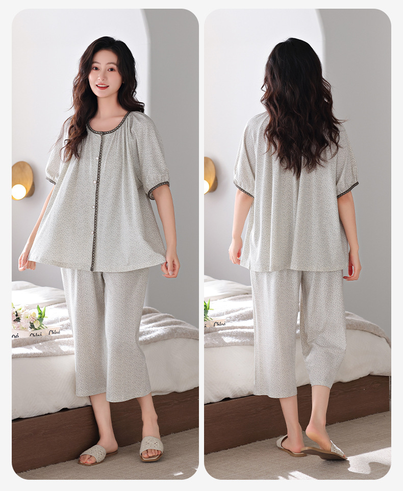 잠옷 여성의 여름 모달 얇은 반팔 카프리 바지 플러스 사이즈 중년 및 노인 어머니를위한 여름 홈 옷스토어 가기