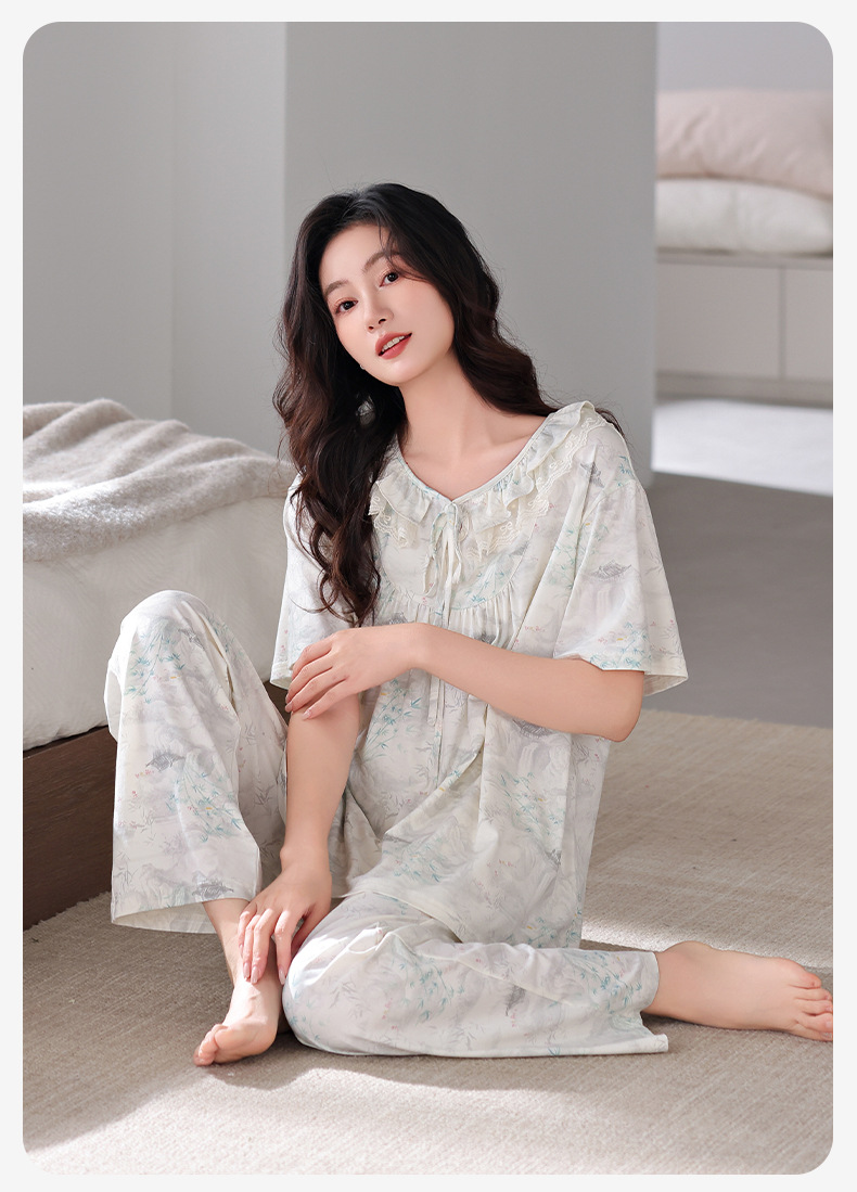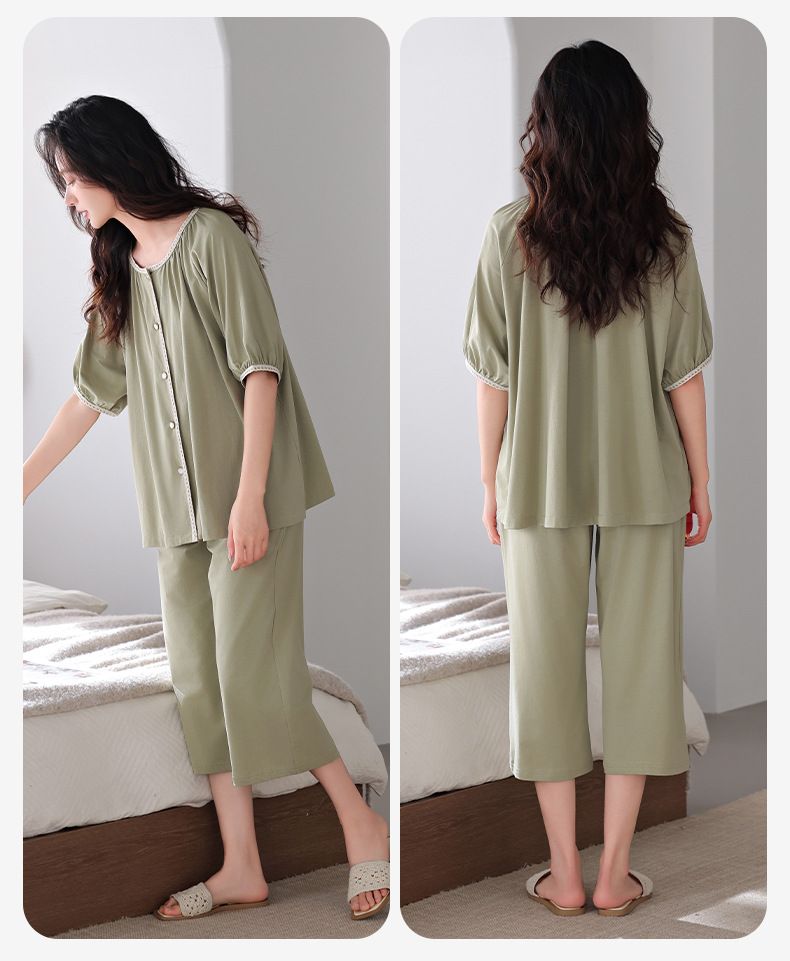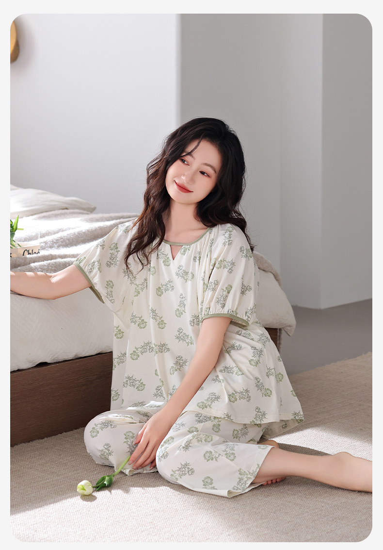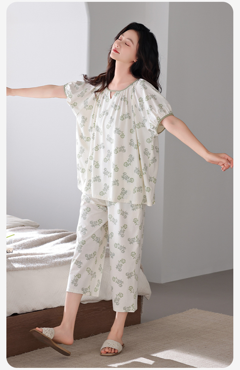 잠옷 여성의 여름 모달 얇은 반팔 카프리 바지 플러스 사이즈 중년 및 노인 어머니를위한 여름 홈 옷스토어 가기