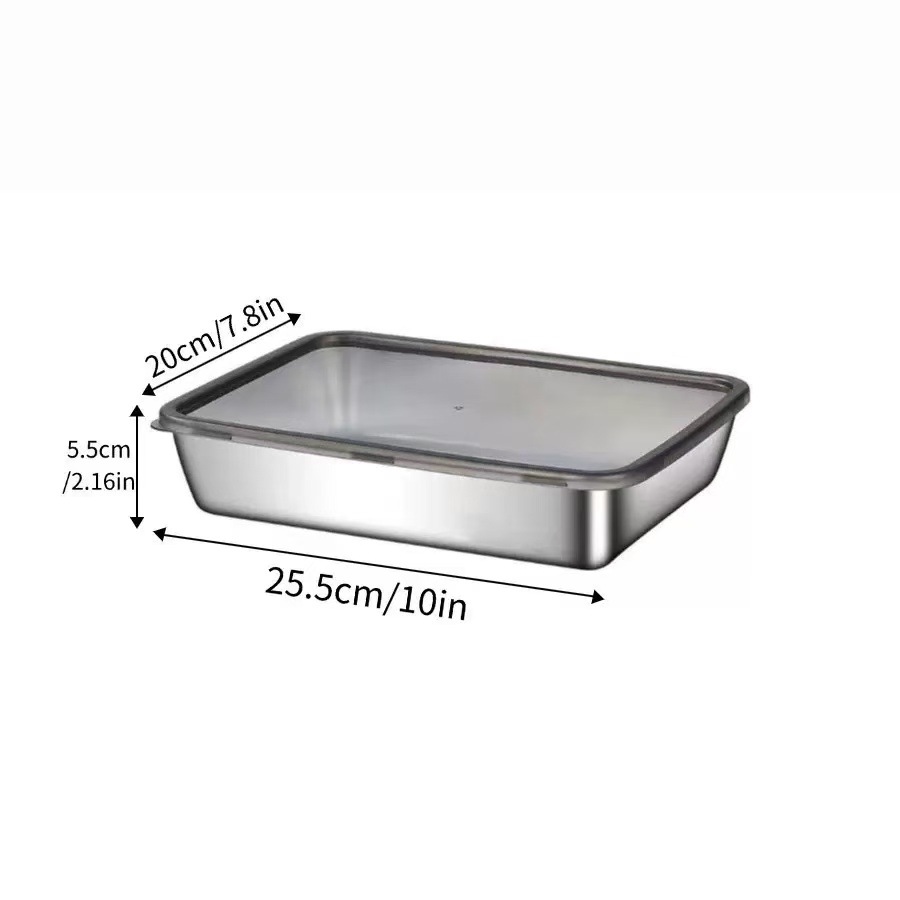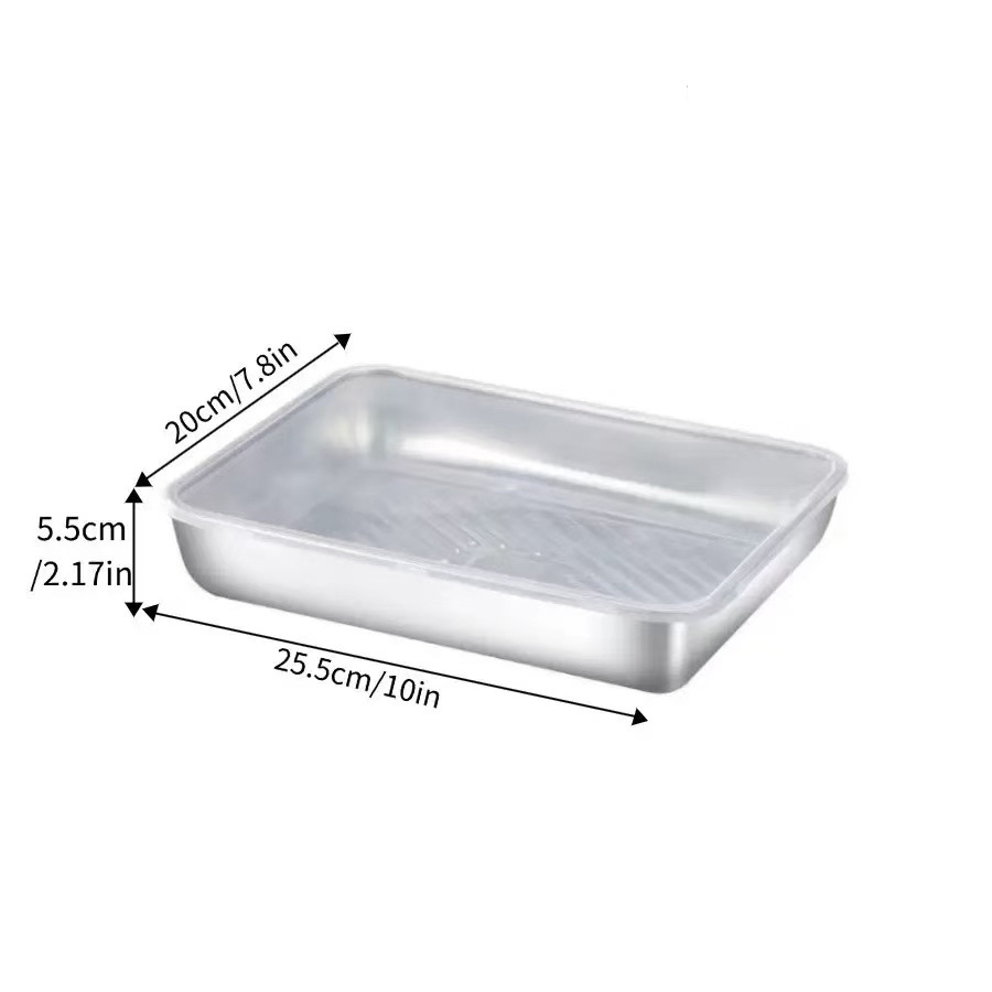 뚜껑이있는 두꺼운 스테인레스 스틸 타월 플레이트 콜드 요리 플레이트 스퀘어 플레이트 쌀 플레이트 신선한 보관 박스 식품 준비 플레이트