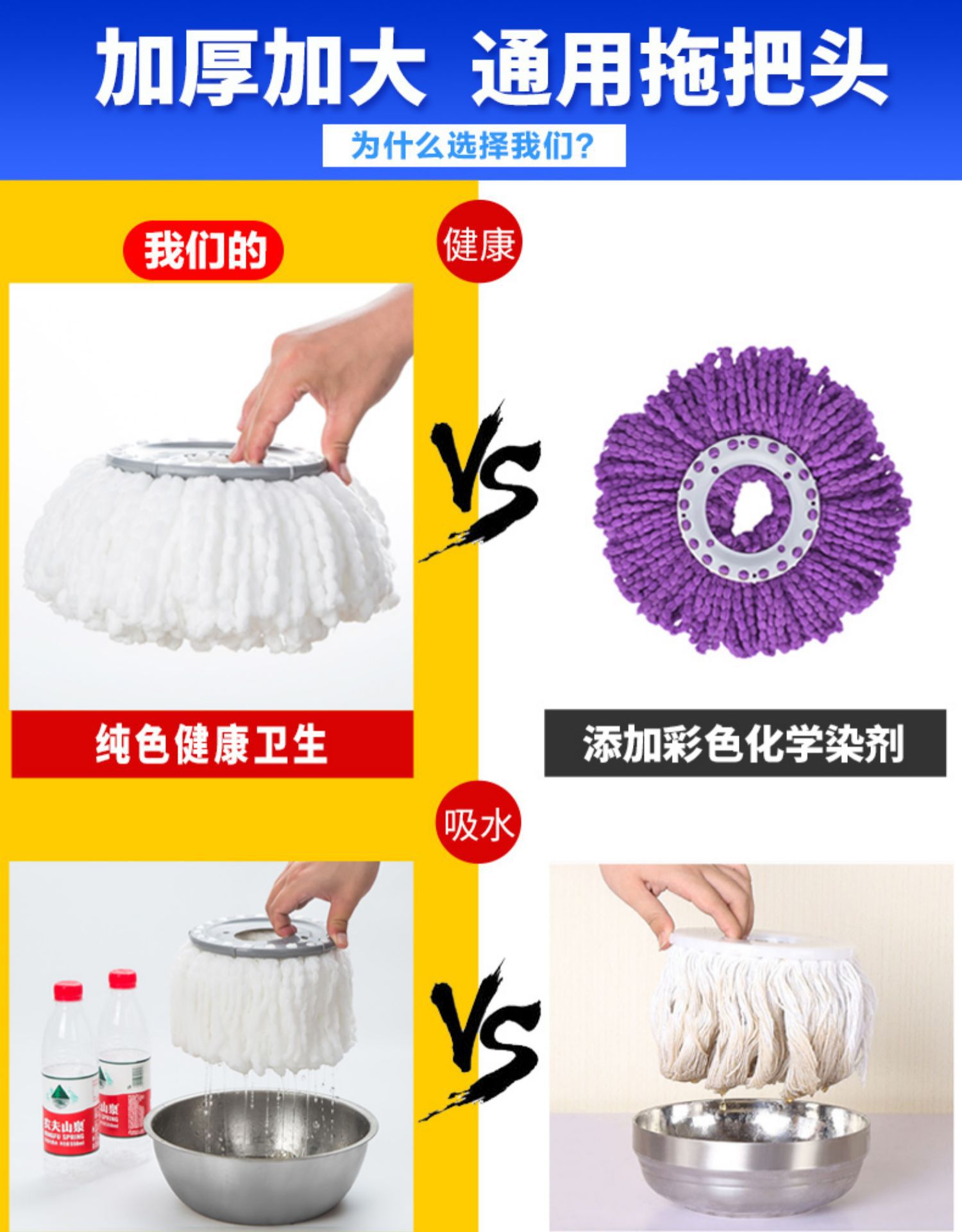 걸레 헤드 교체 헤드 걸레 헤드 토폴로지 좋은 shenyuan 걸레 헤드 비 순수한 면사 회전 지원 그라운드 유니버설 두껍게