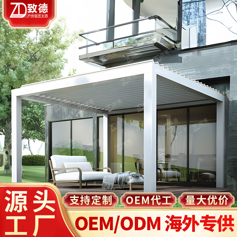 호텔 자외선 차단제 루버 파빌리온 지붕은 OEM 슬라이딩 도어 지붕 타일 뒤뜰 4 코너 현대 알루미늄 합금 파빌리온 일 수 있습니다.스토어 가기