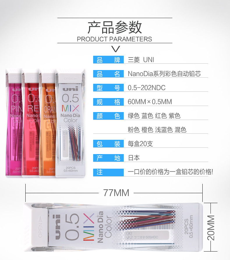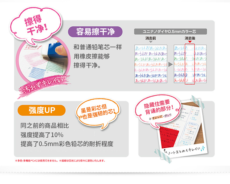 ✅일본 미쓰비시 지울 수있는 컬러 리드 0.5mm 나노 다이아몬드 자동 리드 펜 리필 깨지지 않음