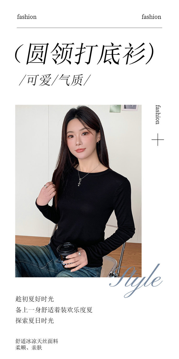 메이양 텐셀 터틀넥 블라우스 여성의 봄과 여름 새로운 얇은 긴 소매 티셔츠 선 스크린 에어컨베이스 셔츠