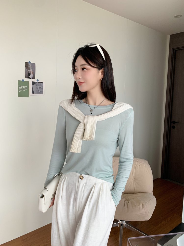 메이양 텐셀 터틀넥 블라우스 여성의 봄과 여름 새로운 얇은 긴 소매 티셔츠 선 스크린 에어컨베이스 셔츠스토어 가기