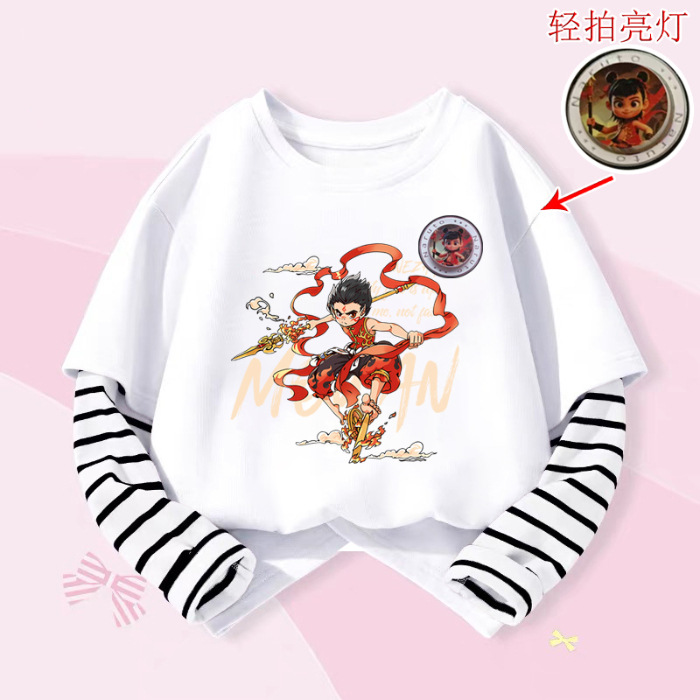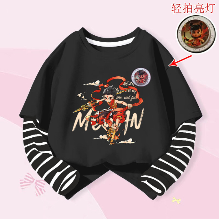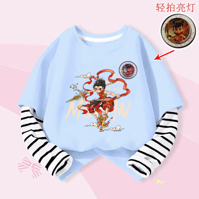 소년 소녀를위한 아동용 티셔츠와 대비되는 색상 봄과 가을면 색상과 일치하는 가짜 2 피스 라운드 넥 긴 소매 상단 봄 바닥스토어 가기