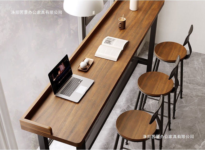 새로운 발코니 바 테이블 간단한 단단한 나무 긴 베젤 테이블 창 벽 좁은 높은 테이블과 의자 조합