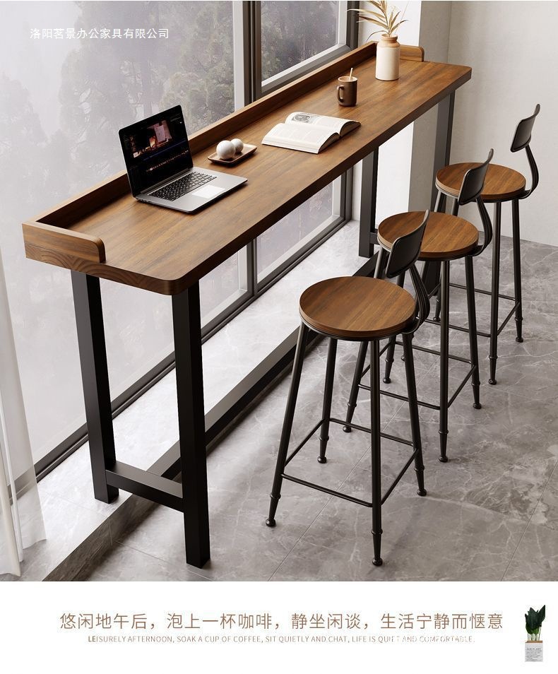 새로운 발코니 바 테이블 간단한 단단한 나무 긴 베젤 테이블 창 벽 좁은 높은 테이블과 의자 조합스토어 가기