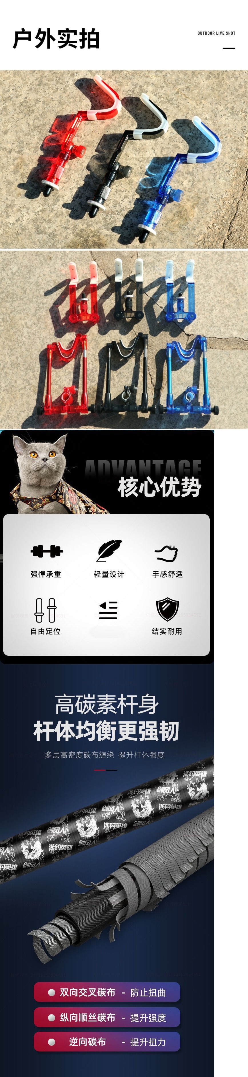배터리 브래킷 거대한 교수형 헤드 더블 헤드 폴딩 혼 헤드 낚시 플랫폼 낚싯로드 액세서리로드스토어 가기