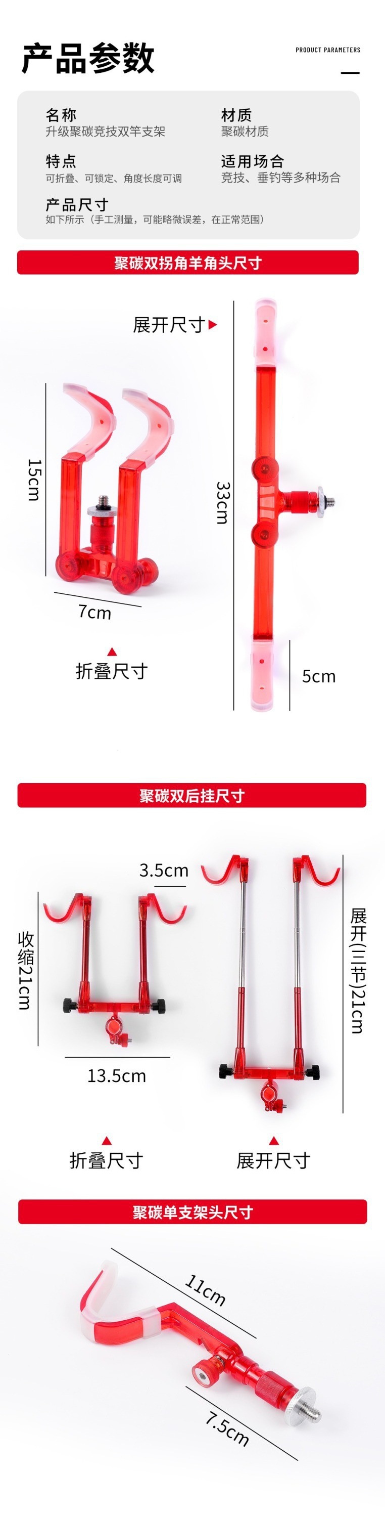 배터리 브래킷 거대한 교수형 헤드 더블 헤드 폴딩 혼 헤드 낚시 플랫폼 낚싯로드 액세서리로드