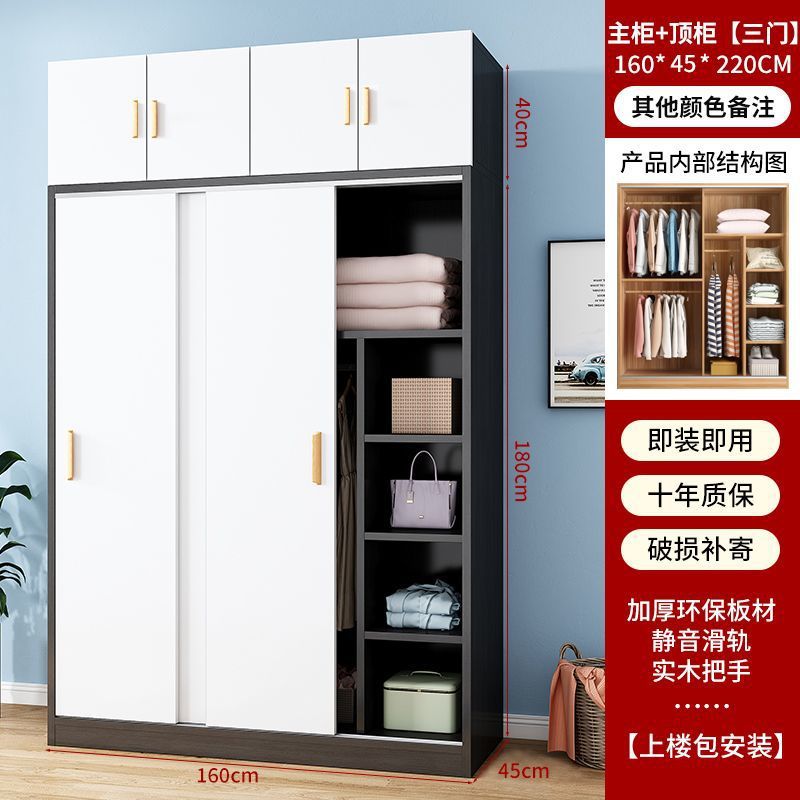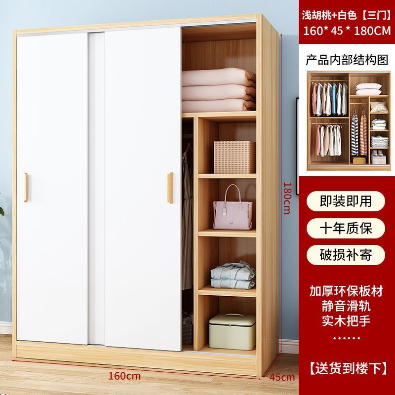 슬라이딩 도어 솔리드 우드 경제적 인 간단한 저장 캐비닛 플레이트 저장 캐비닛 간단한 옷장 공장 현대 미니멀리스트 옷장