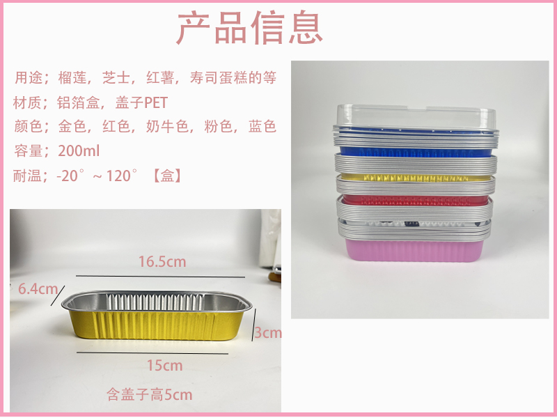 VHM7 도매 케이크 알루미늄 호일 상자 직사각형 포장 상자 베이킹 구운 두리안 케이크 치즈 상자 알루미늄 호일 저항 베이킹 주석스토어 가기