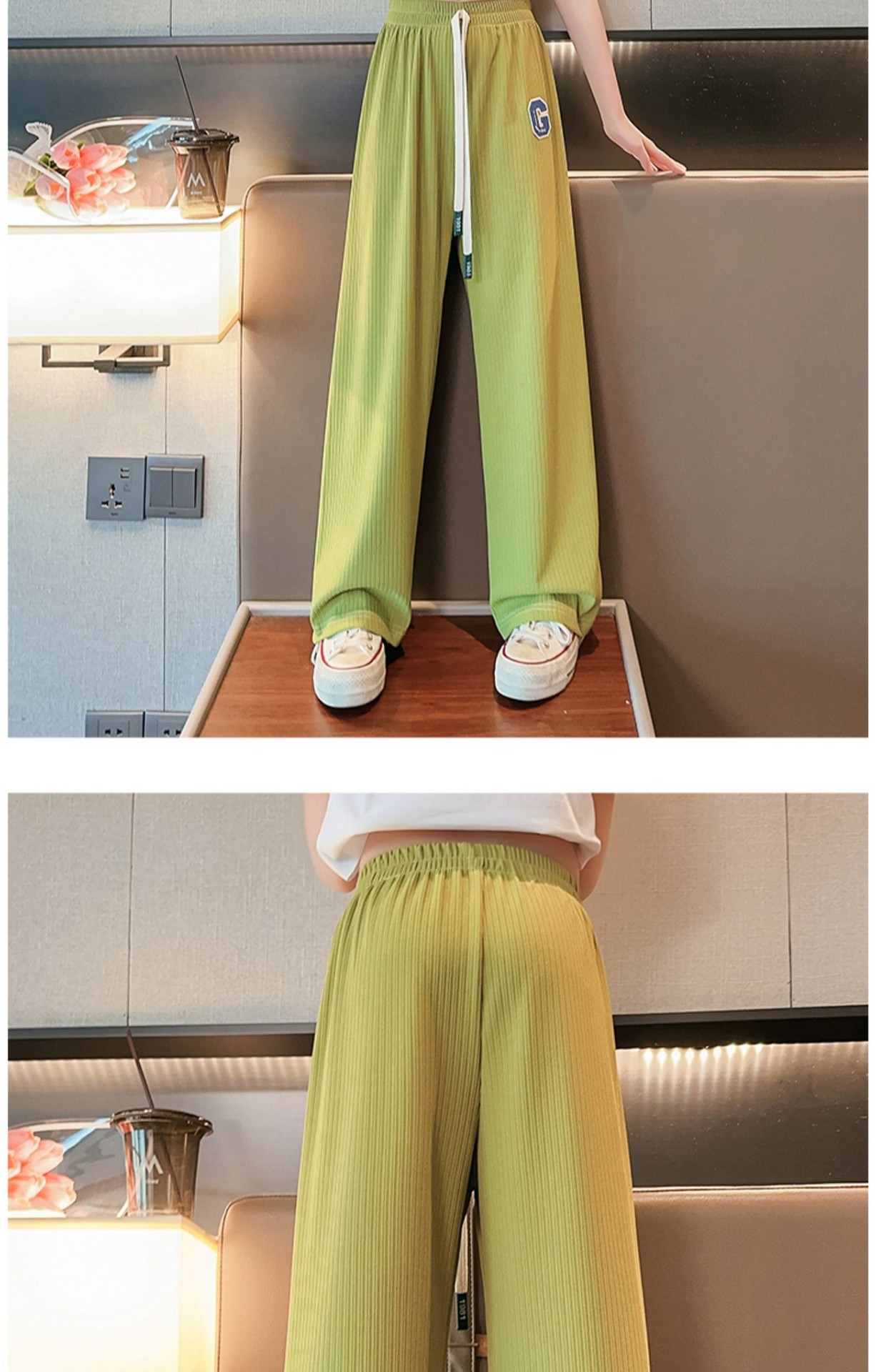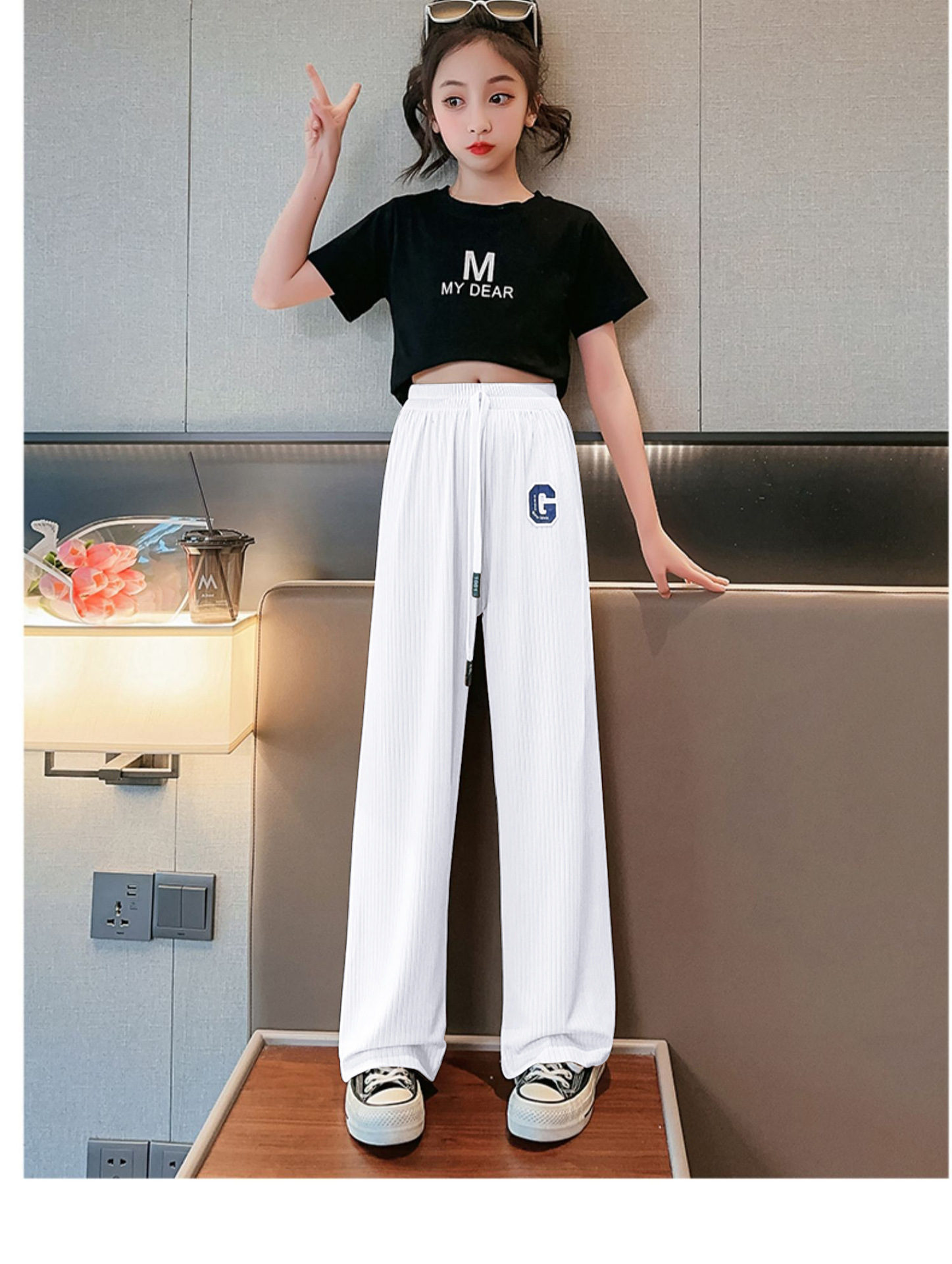 소녀 바지 2025 여름 새로운 어린이 스트레이트 와이드 레그 바지 대형 어린이와 소녀를위한 얇은 아이스 실크 캐주얼 바지 트렌디스토어 가기