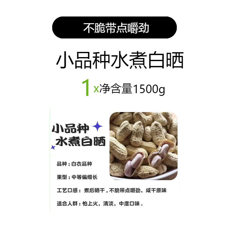 • 삶아서 햇볕에 말린 작은 품종의 땅콩(1.5kg개는 바삭하지 않음)