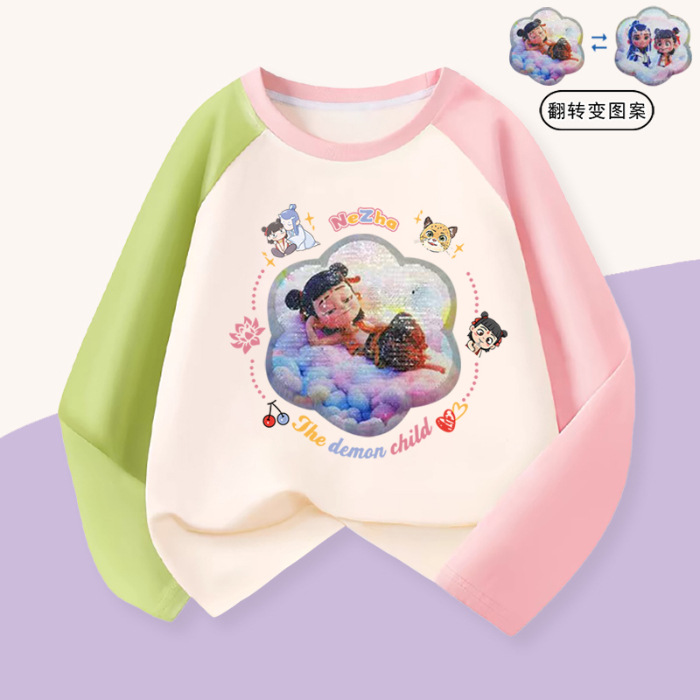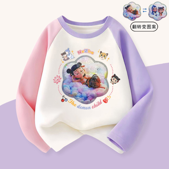 소녀 이른 가을 면화 긴 소매 인쇄 가역 패턴 스팽베이스 탑