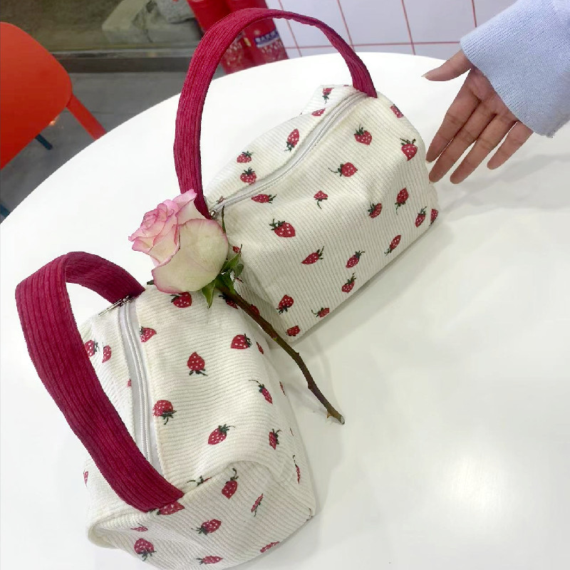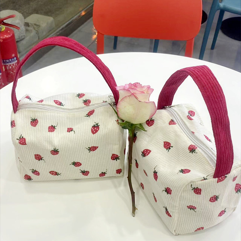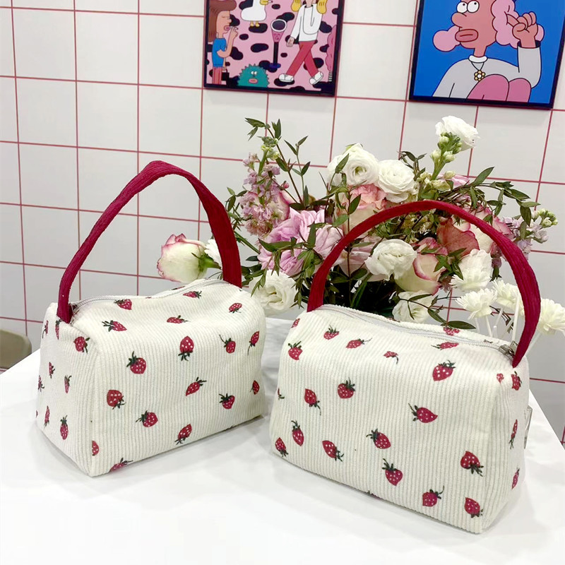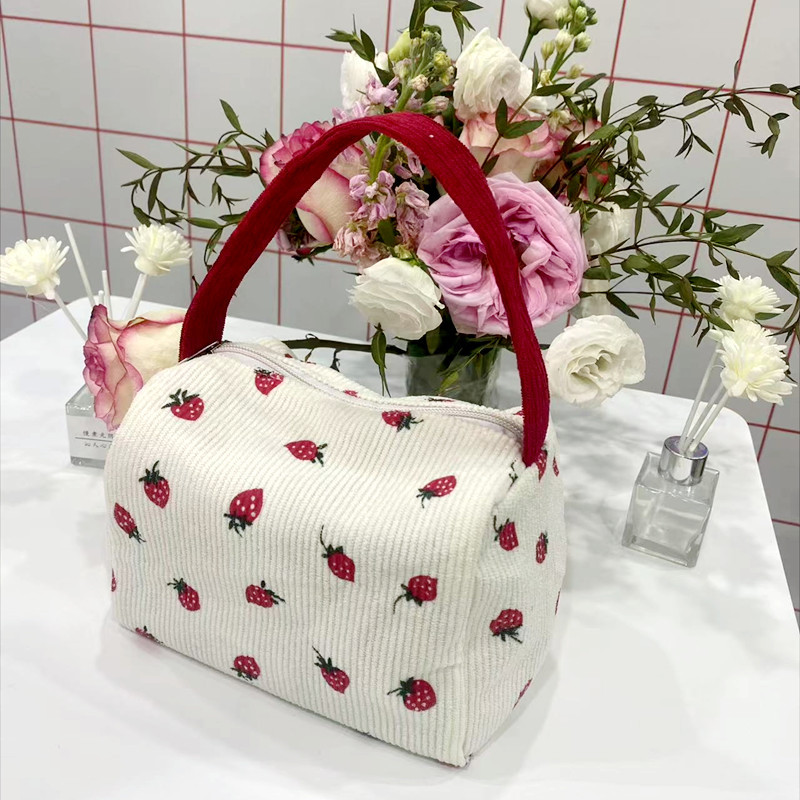 국경 간 새로운 코듀로이 딸기 틈새 올 매치 화장품 가방 고급 대용량 저장 휴대용 화장품 워시 백스토어 가기