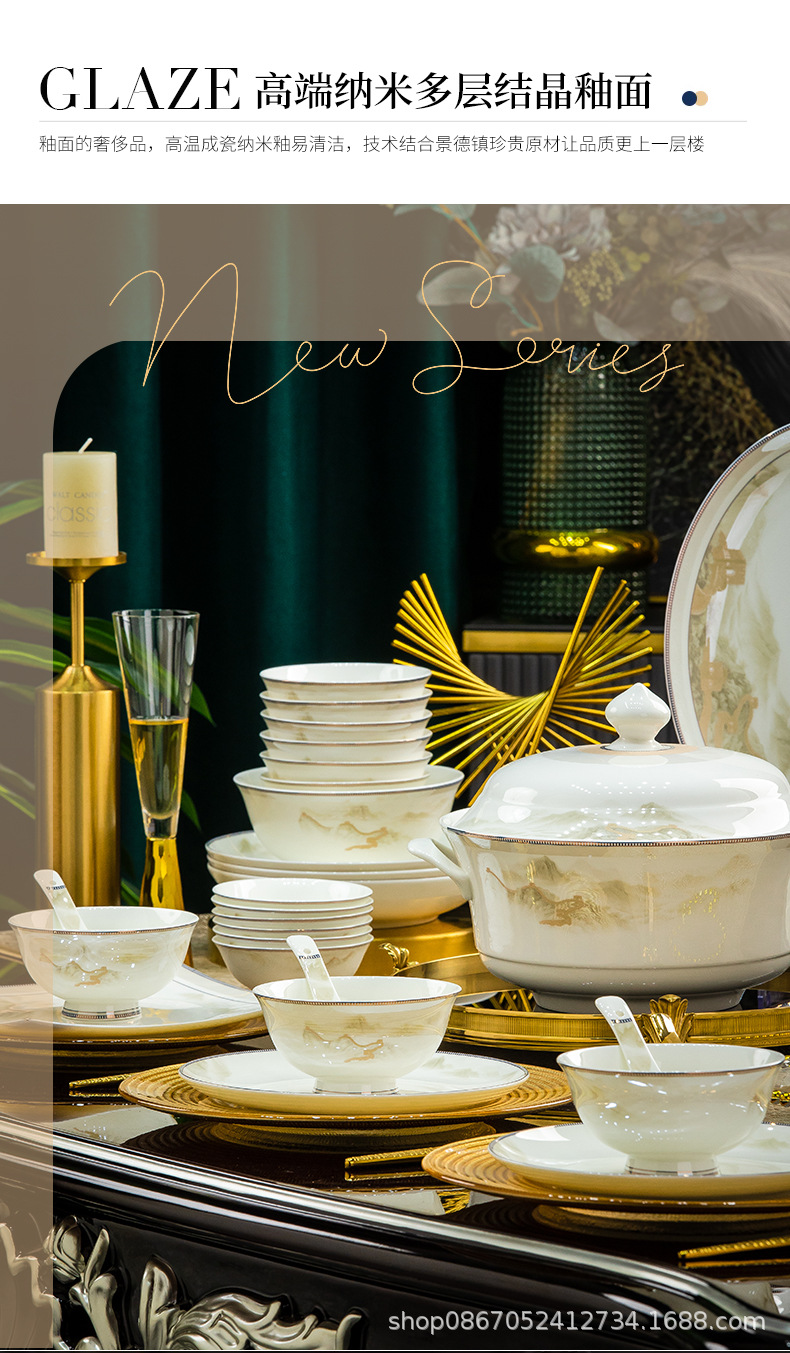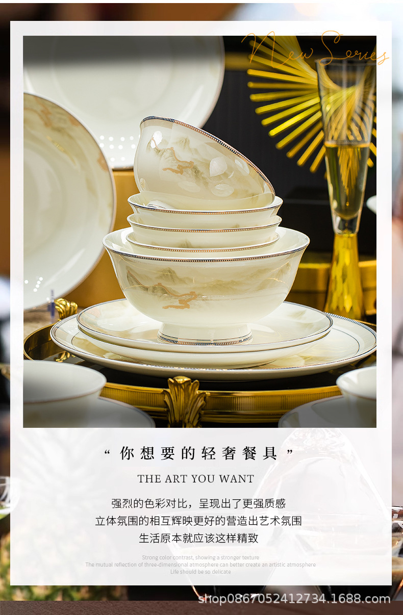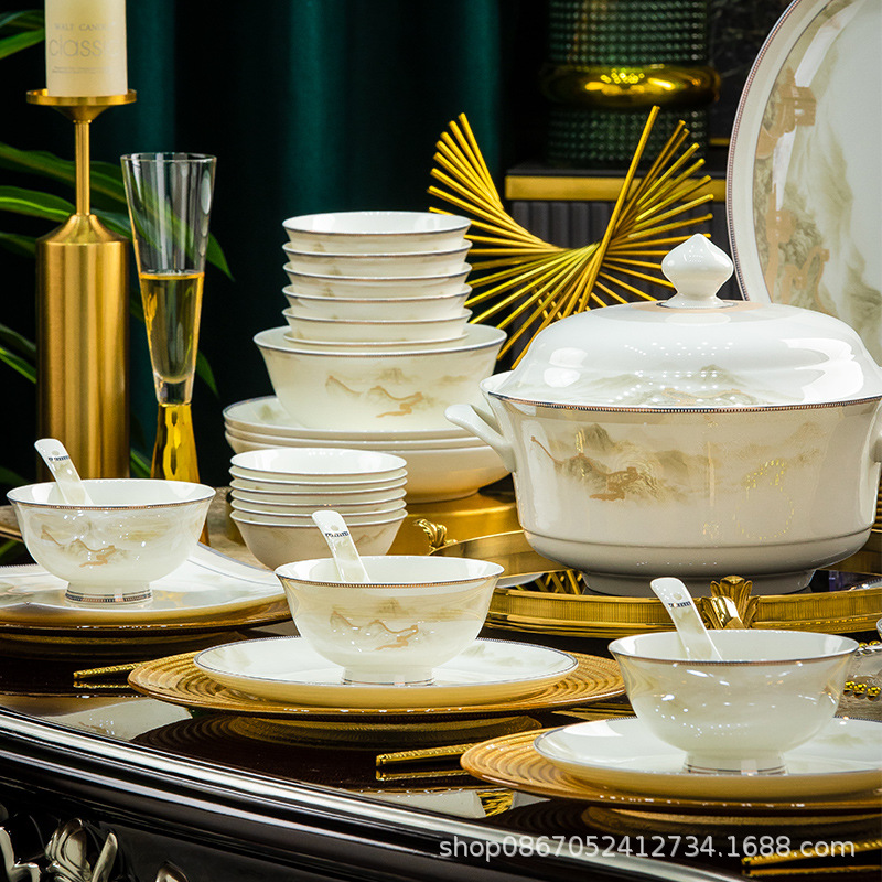 ✅그릇 가정 2024 새로운 Jingdezhen 빛 럭셔리 뼈 중국 식기 세트 요리 세트 가정 용품 선물 그릇