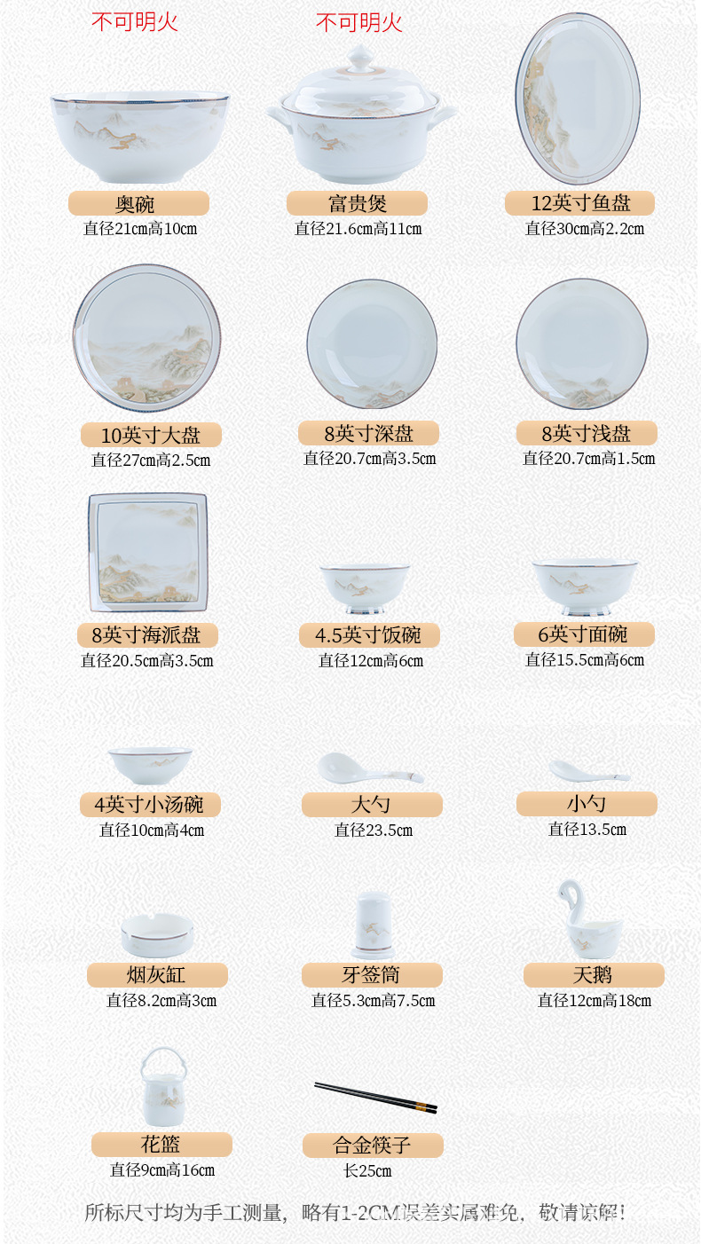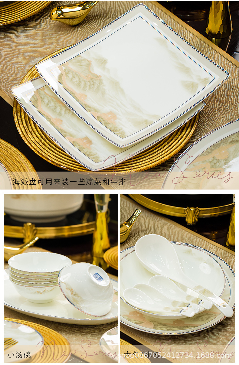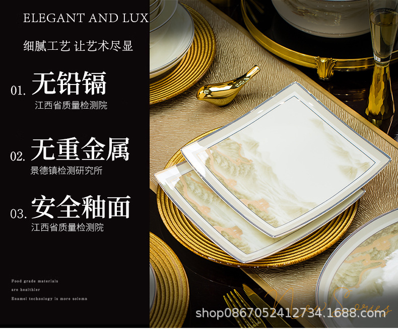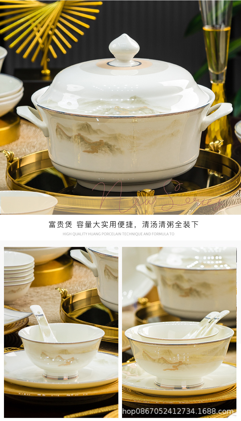 ✅그릇 가정 2024 새로운 Jingdezhen 빛 럭셔리 뼈 중국 식기 세트 요리 세트 가정 용품 선물 그릇