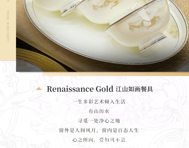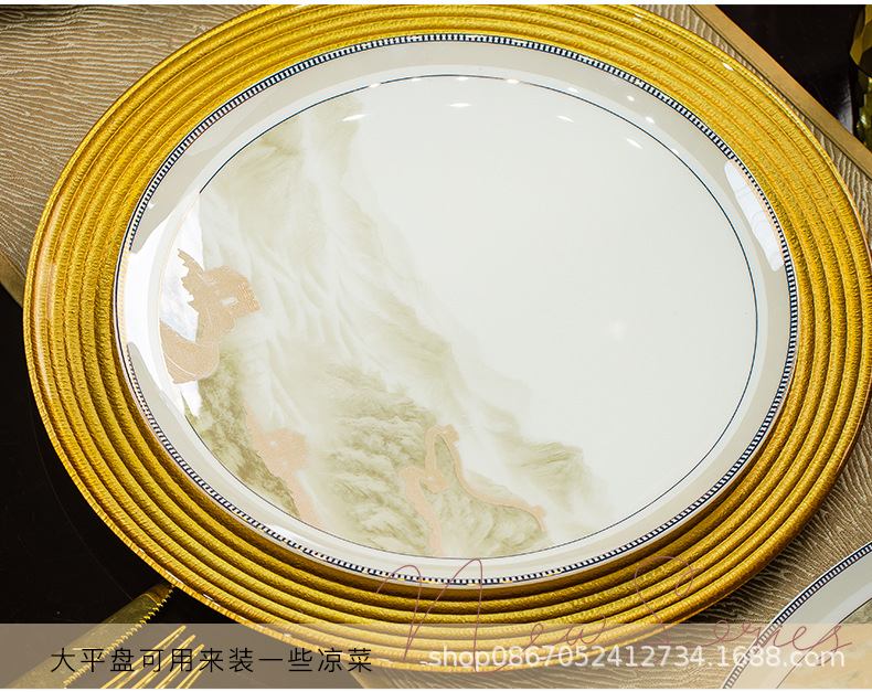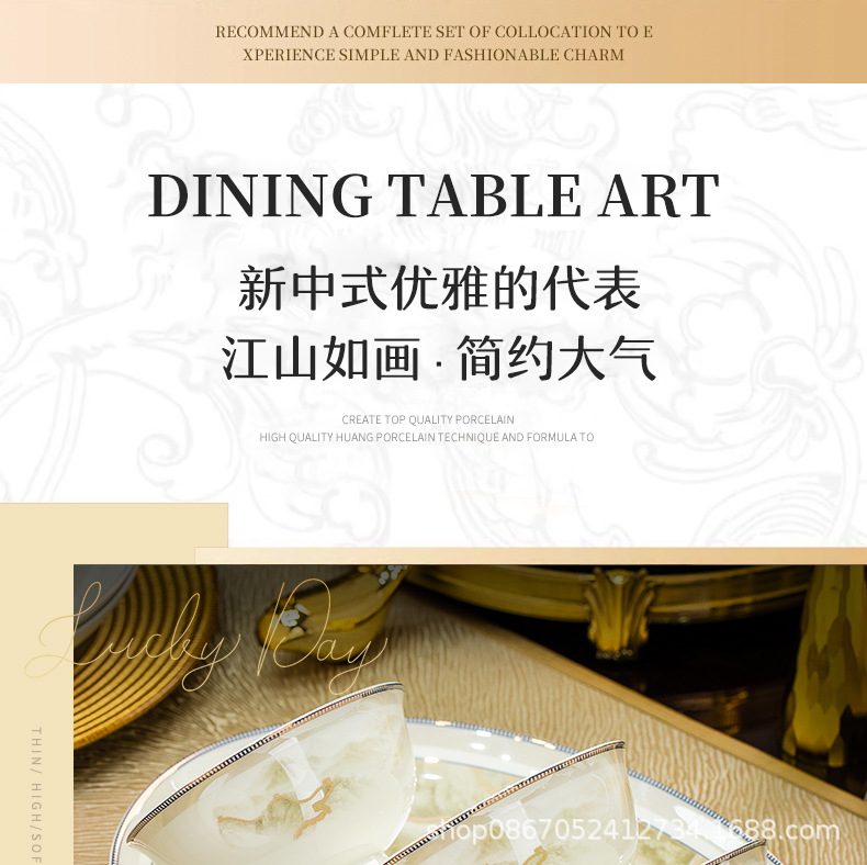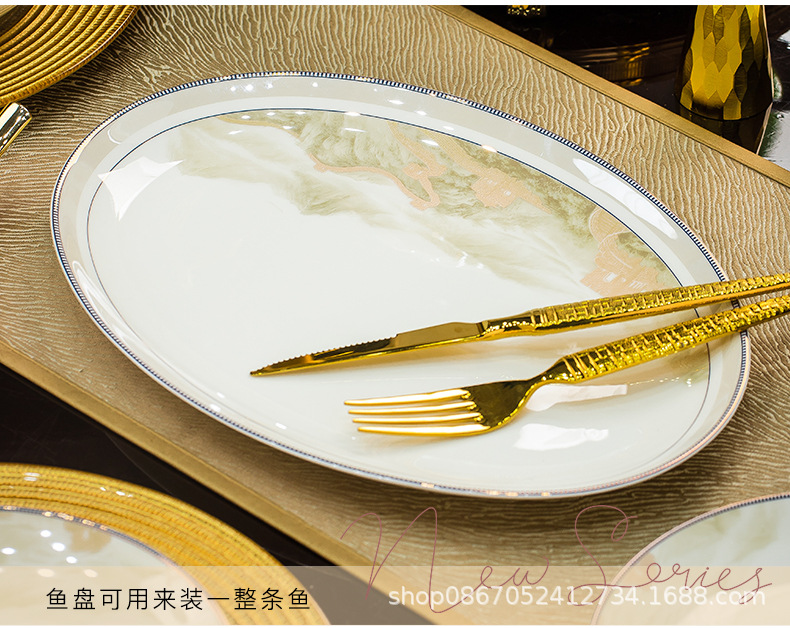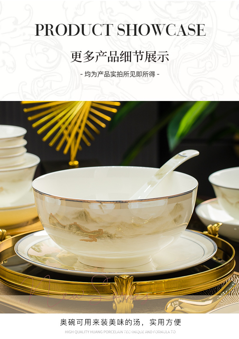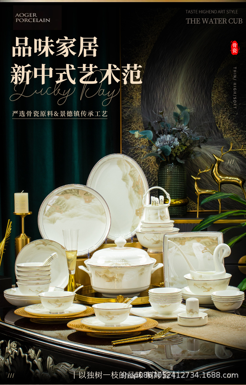 ✅그릇 가정 2024 새로운 Jingdezhen 빛 럭셔리 뼈 중국 식기 세트 요리 세트 가정 용품 선물 그릇스토어 가기