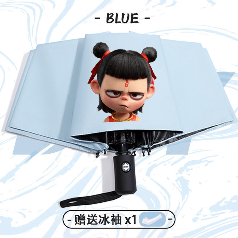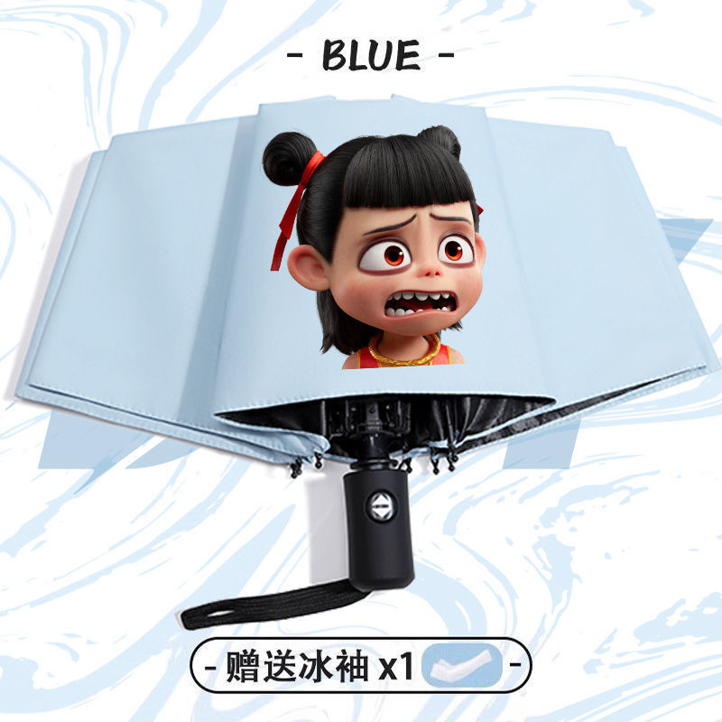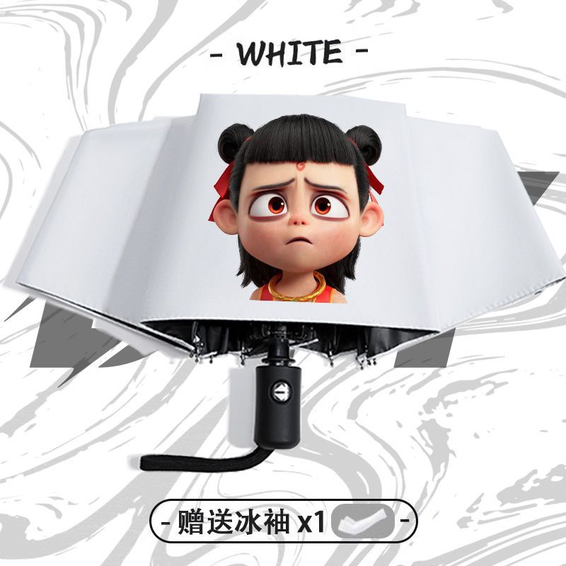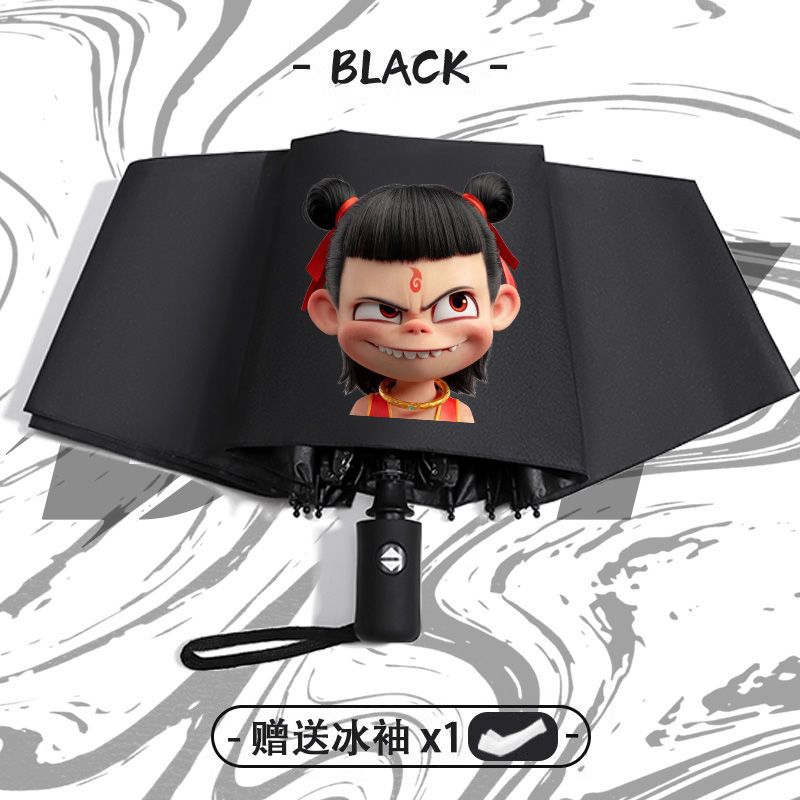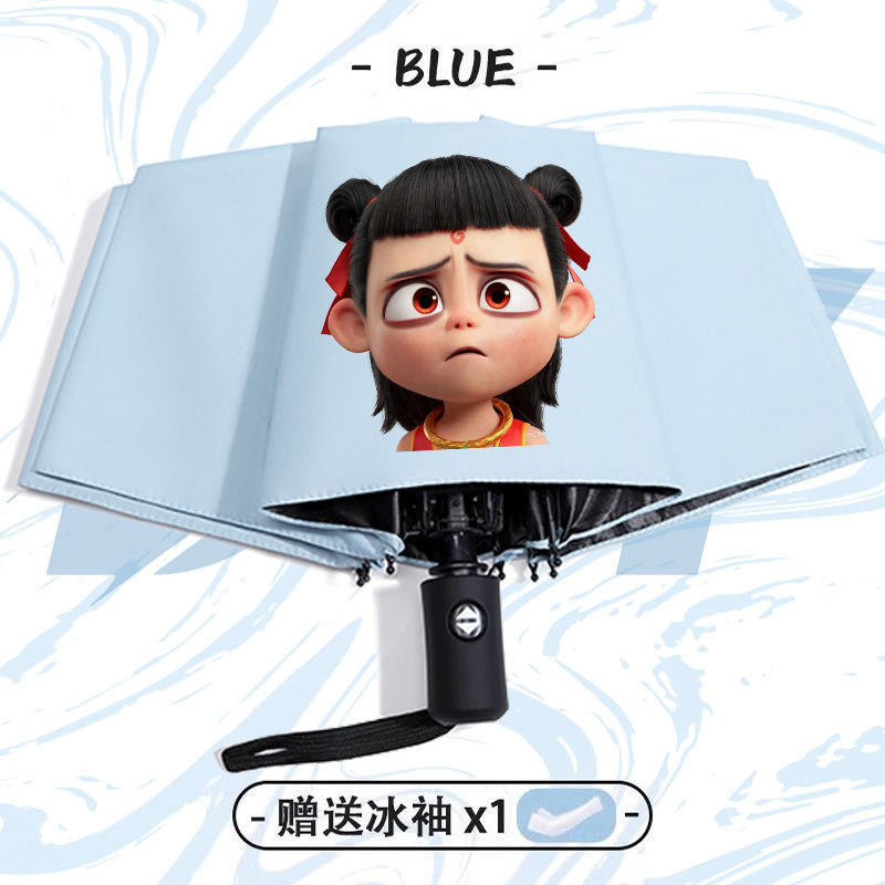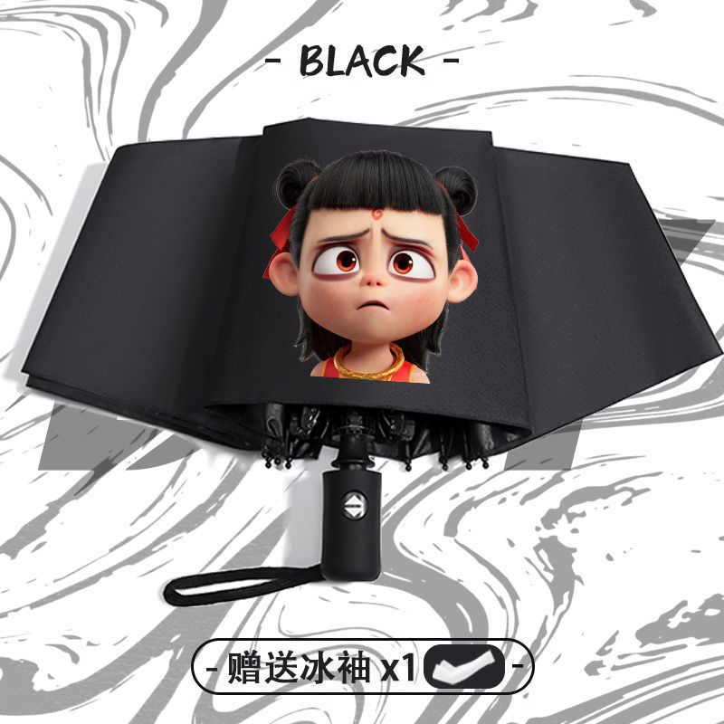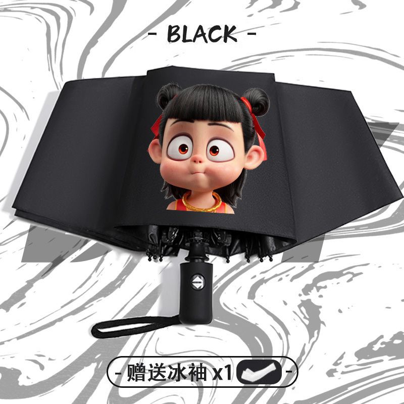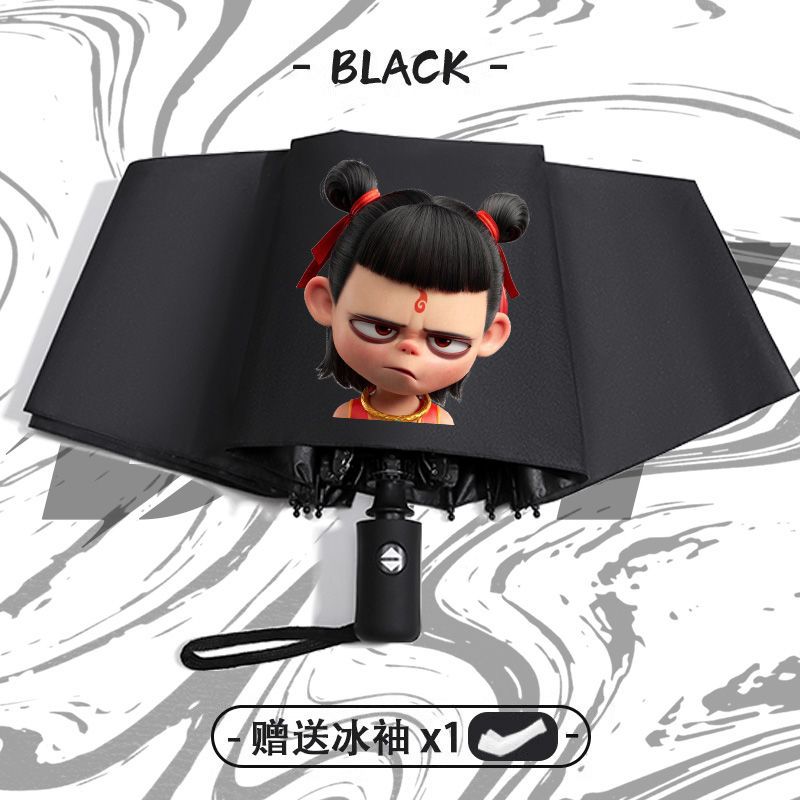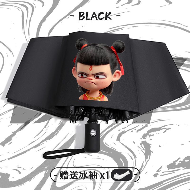 Ao Bing Nezha 공동 우산 어린이 소년 햇빛 비 이중 사용 소녀 선 스크린 접기 자동 우산 학생 중등스토어 가기