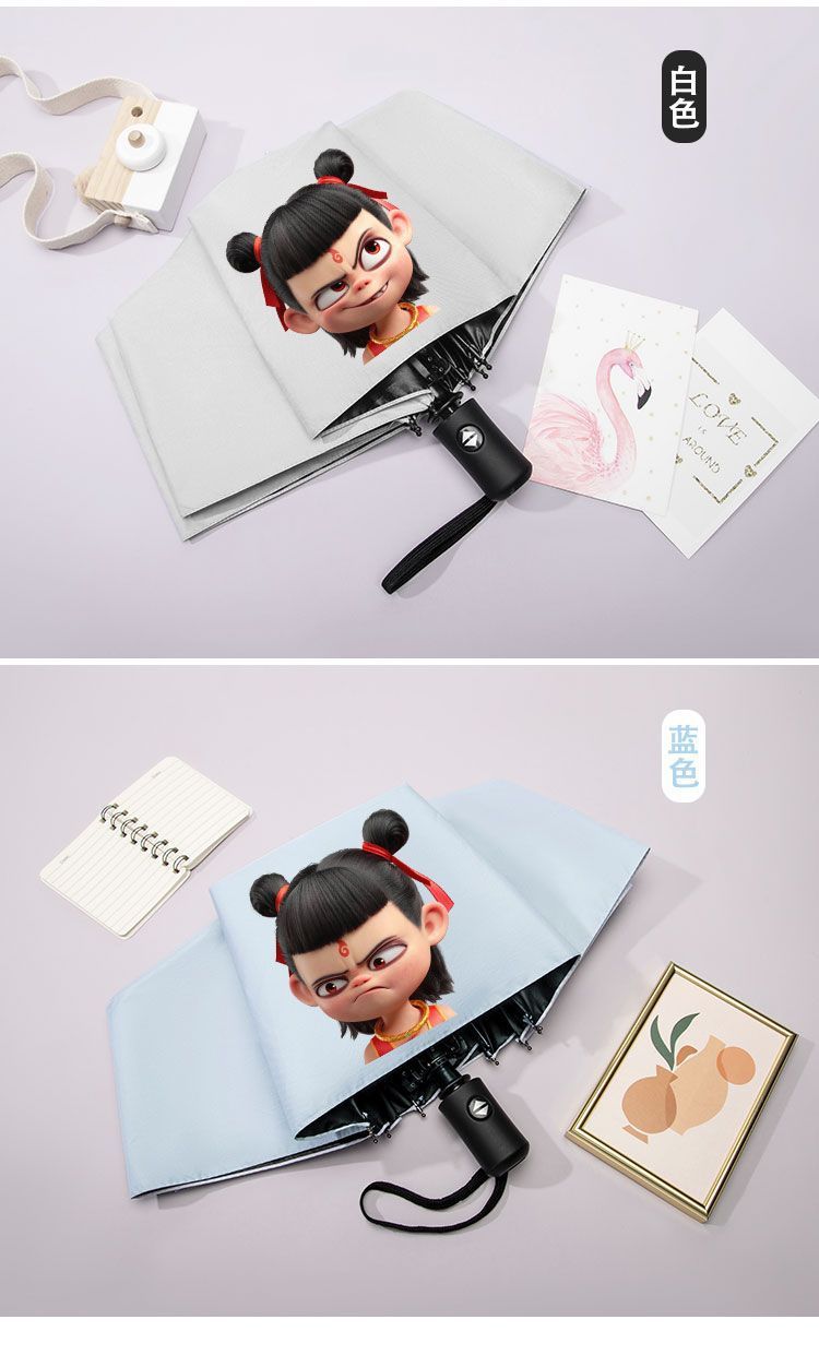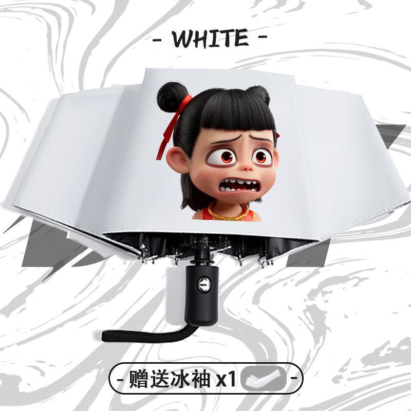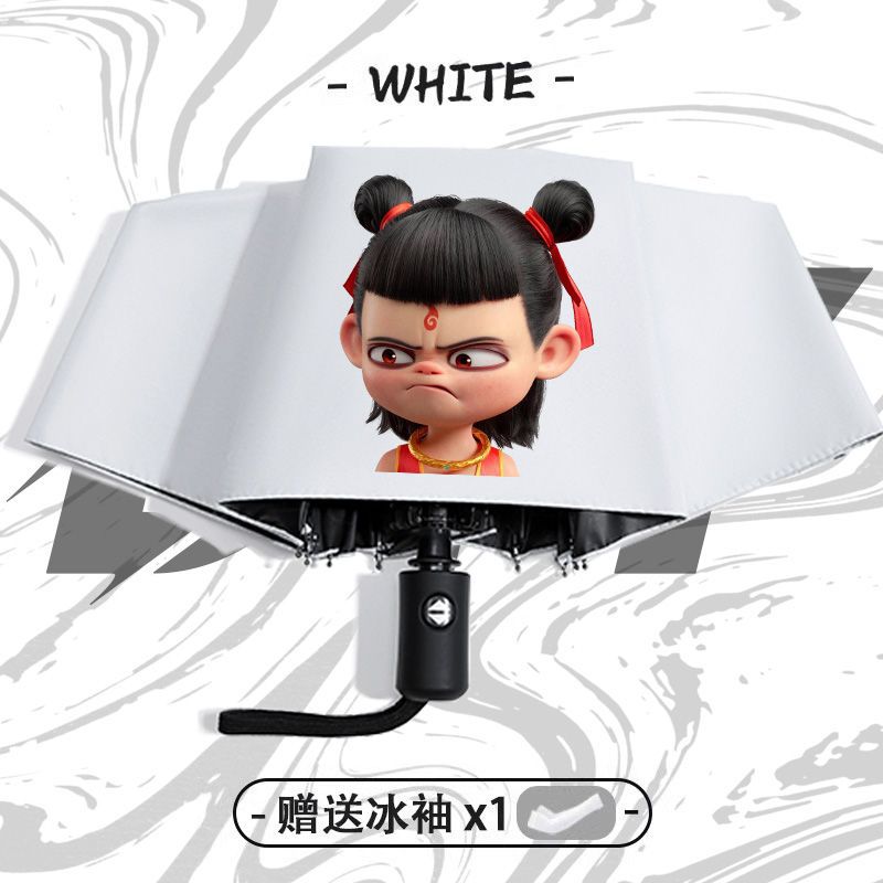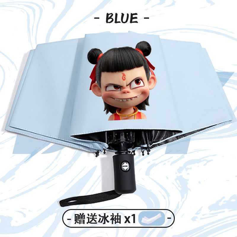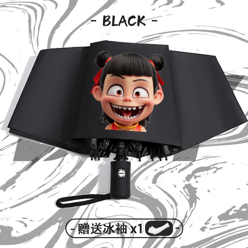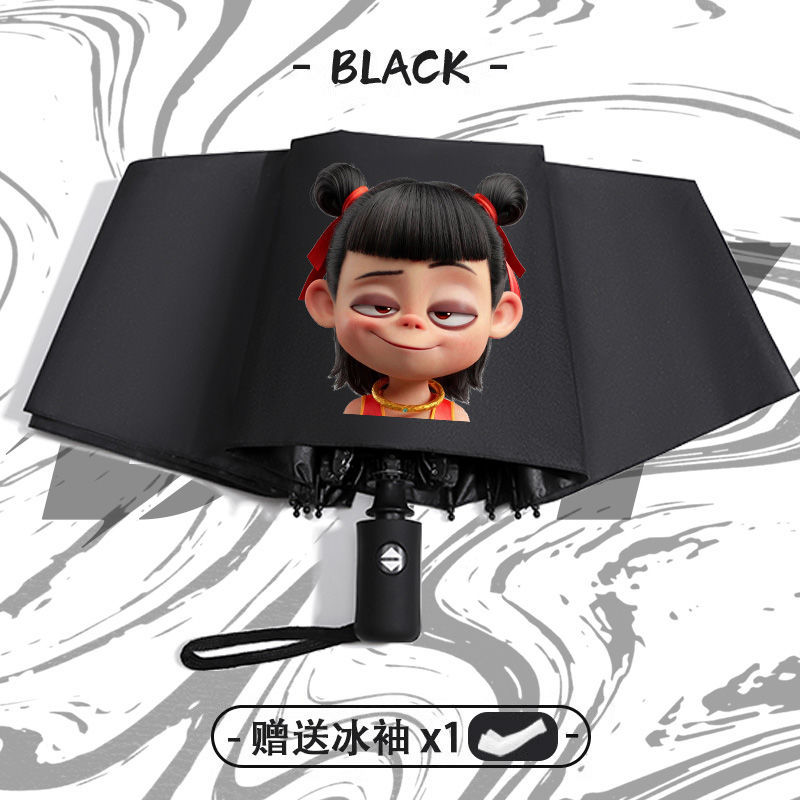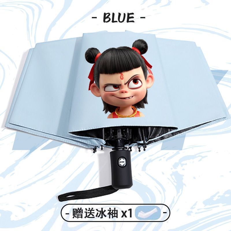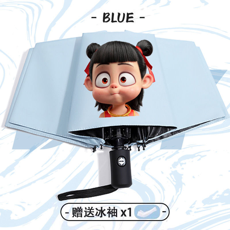 Ao Bing Nezha 공동 우산 어린이 소년 햇빛 비 이중 사용 소녀 선 스크린 접기 자동 우산 학생 중등스토어 가기